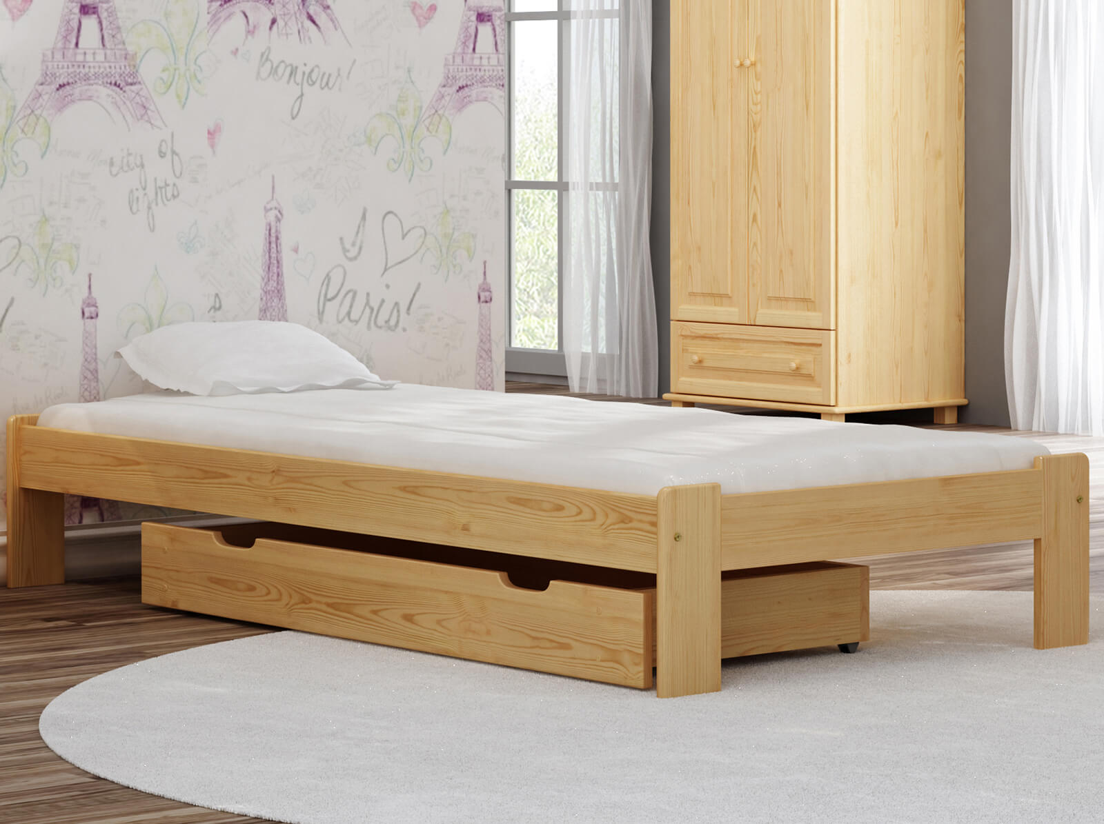 Ez a bútor a legmagasabb minőségű fenyőfából készült, 3-szoros bevonattal, környezetbarát festékekkel. Azon kevés cégek közé tartozunk, amelyek az Országos Higiéniai Intézet által tanúsított festékeket használnak a festéshez. Lakkjaink engedélyezettek olyan tárgyakra, amelyekkel gyermekek érintkeznek (a DIN EN 71 szabvány 3. része szerint).