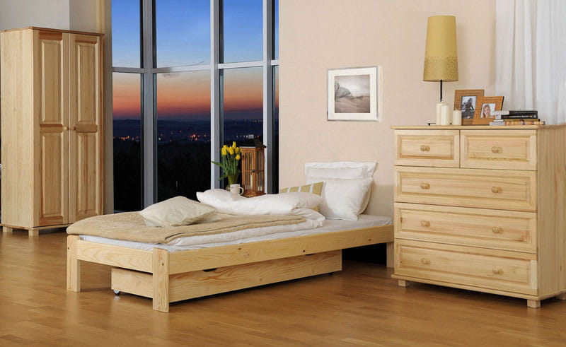 Az Adéla ágy kizárólag természetes fenyőfából készült, ami masszív felépítést biztosít. Minimalista formája tökéletesen illeszkedik a klasszikus vagy modern lakberendezéshez. A bútor tökéletesen ötvözi az eleganciát és a kényelmet, így biztosítva a hálószoba sokoldalúságát. Az egyszerű kialakítás dekoratív hangsúlyt ad a szobának, miközben a karbantartás egyszerű. Az Adele modell harmóniát hoz a szobába és ideális feltételeket teremt a pihenéshez.