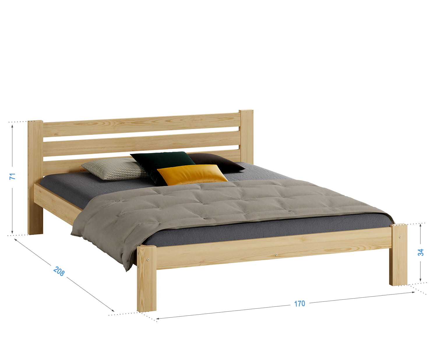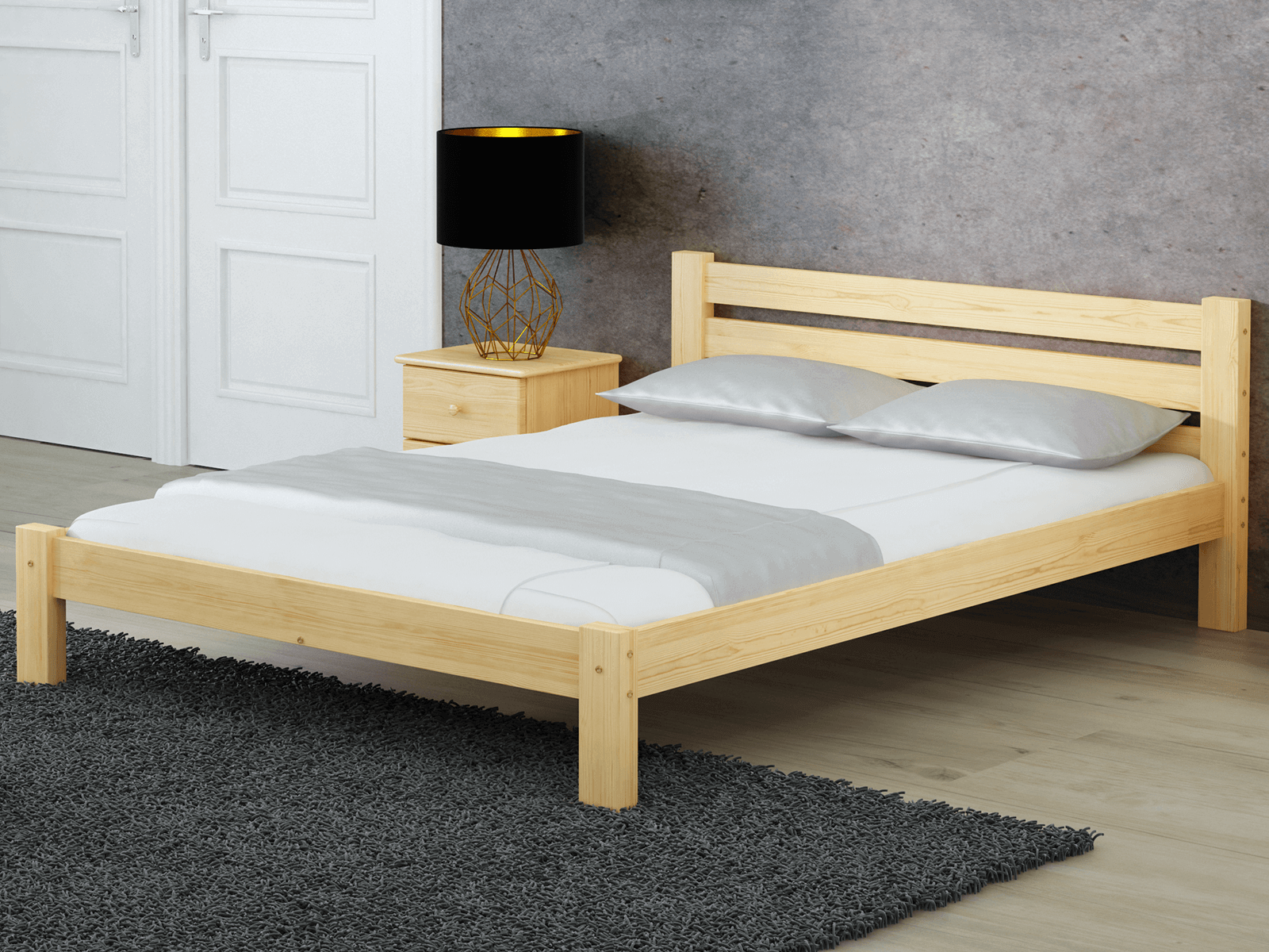 Az Ajza ágy kizárólag természetes fenyőfából készült, ami masszív felépítést biztosít. Minimalista formája tökéletesen illeszkedik a klasszikus vagy modern lakberendezéshez. A bútor tökéletesen ötvözi az eleganciát és a kényelmet, így biztosítva a hálószoba sokoldalúságát. Az egyszerű kialakítás dekoratív hangsúlyt ad a szobának, miközben a karbantartás egyszerű. Az Ajza modell harmóniát hoz a szobába és ideális feltételeket teremt a pihenéshez.
