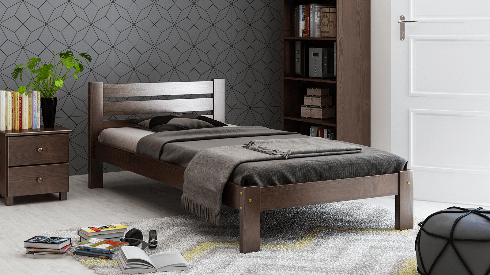 Az Ajza ágy kizárólag természetes fenyőfából készült, ami masszív felépítést biztosít. Minimalista formája tökéletesen illeszkedik a klasszikus vagy modern lakberendezéshez. A bútor tökéletesen ötvözi az eleganciát és a kényelmet, így biztosítva a hálószoba sokoldalúságát. Az egyszerű kialakítás dekoratív hangsúlyt ad a szobának, miközben a karbantartás egyszerű. Az Ajza modell harmóniát hoz a szobába és ideális feltételeket teremt a pihenéshez.