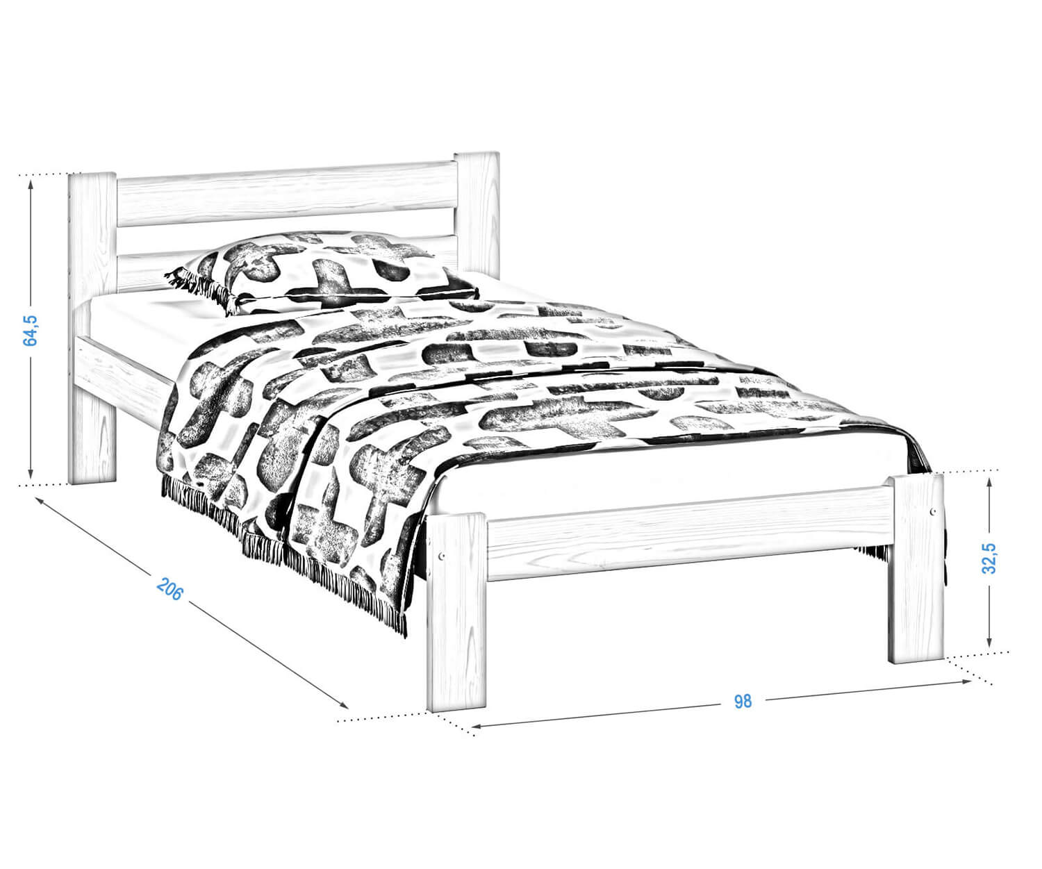 A készlethez tartozik egy rugalmas rács, amely 12 nyírfa lécből készül, amelyeket szövetszalaggal kötünk össze. Ez a bútor a legmagasabb minőségű fenyőfából készült, 3-szoros bevonattal, környezetbarát festékkel. Azon kevés cégek közé tartozunk, amelyek az Országos Higiéniai Intézet által tanúsított festékeket használnak a festéshez. Lakkjaink engedélyezettek olyan tárgyakra, amelyekkel gyermekek érintkeznek (a DIN EN 71 szabvány 3. része szerint).