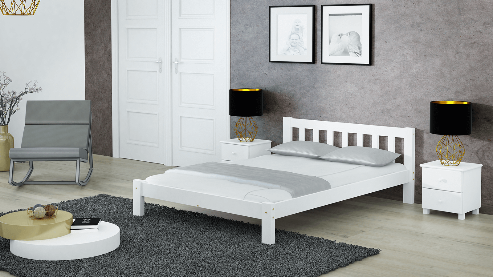 Az Alena ágy kizárólag természetes fenyőfából készült, ami masszív felépítést biztosít. Minimalista formája tökéletesen illeszkedik a klasszikus vagy modern lakberendezéshez. A bútor tökéletesen ötvözi az eleganciát és a kényelmet, így biztosítva a hálószoba sokoldalúságát. Az egyszerű kialakítás dekoratív hangsúlyt ad a szobának, miközben a könnyű karbantartás is megmarad. Az Alena modell harmóniát hoz a szobába és ideális feltételeket teremt a pihenéshez.