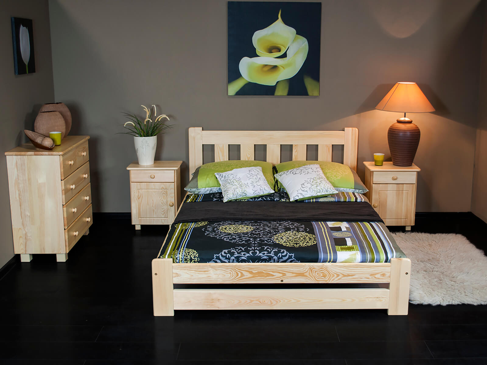 TermékleírásA Mila franciaágy 140x200 kizárólag természetes fenyőfából készült, ami masszív felépítést biztosít. Minimalista formája tökéletesen illeszkedik a klasszikus vagy modern lakberendezéshez. A bútor tökéletesen ötvözi az eleganciát és a kényelmet, sokoldalú jelleget kölcsönözve a hálószobának. Az egyszerű kialakítás dekoratív hangsúlyt ad a szobának, miközben a karbantartás egyszerű. A Mila modell harmóniát hoz a szobába és ideális feltételeket teremt a pihenéshez.
