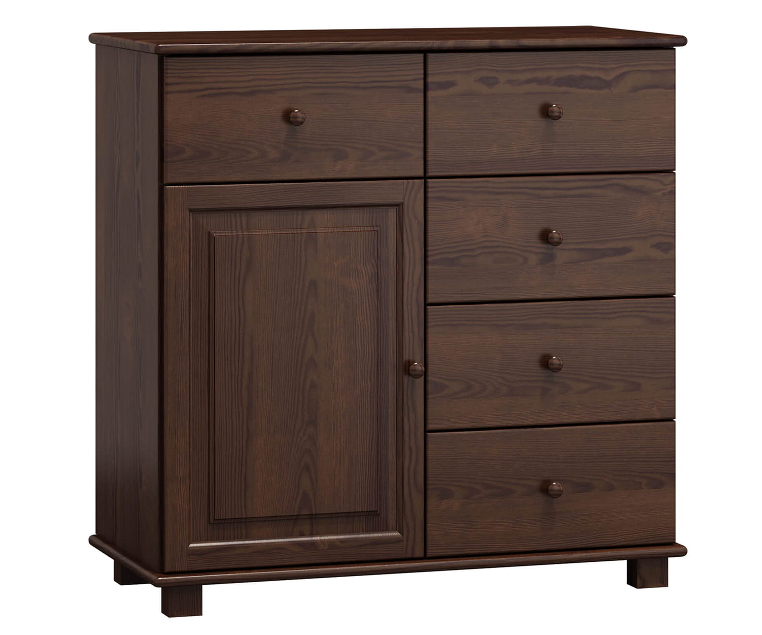| Fiókos komód #47 mélység 42Fenyőfából készült, ami tartós konstrukciót biztosít. Ergonomikus formája lehetővé teszi a dolgok tárolását és rendben tartását. A síneknek köszönhetően a fiókok nagyon könnyen kicsúsztathatók, ami hozzájárul a kényelmes használathoz. Minimalista kialakításának köszönhetően klasszikus és modern enteriőrökbe egyaránt illik. A természetes fából készült bútordarab ízléses dekorációs elemként funkcionál. A bútor a legjobb minőségű fenyőfából készült, és 3 réteg környezetbarát lakkréteggel festett. Azon kevés cégek közé tartozunk, amelyek az Állami Higiéniai Állomás által tanúsított lakkokat használnak. Az általunk használt lakkok engedélyezettek olyan tárgyakra, amelyekkel gyermekek érintkeznek (DIN EN 71, 3. számú szabványnak való megfelelés). A terméket csomagban szállítjuk, és önszerelésre szolgál. |