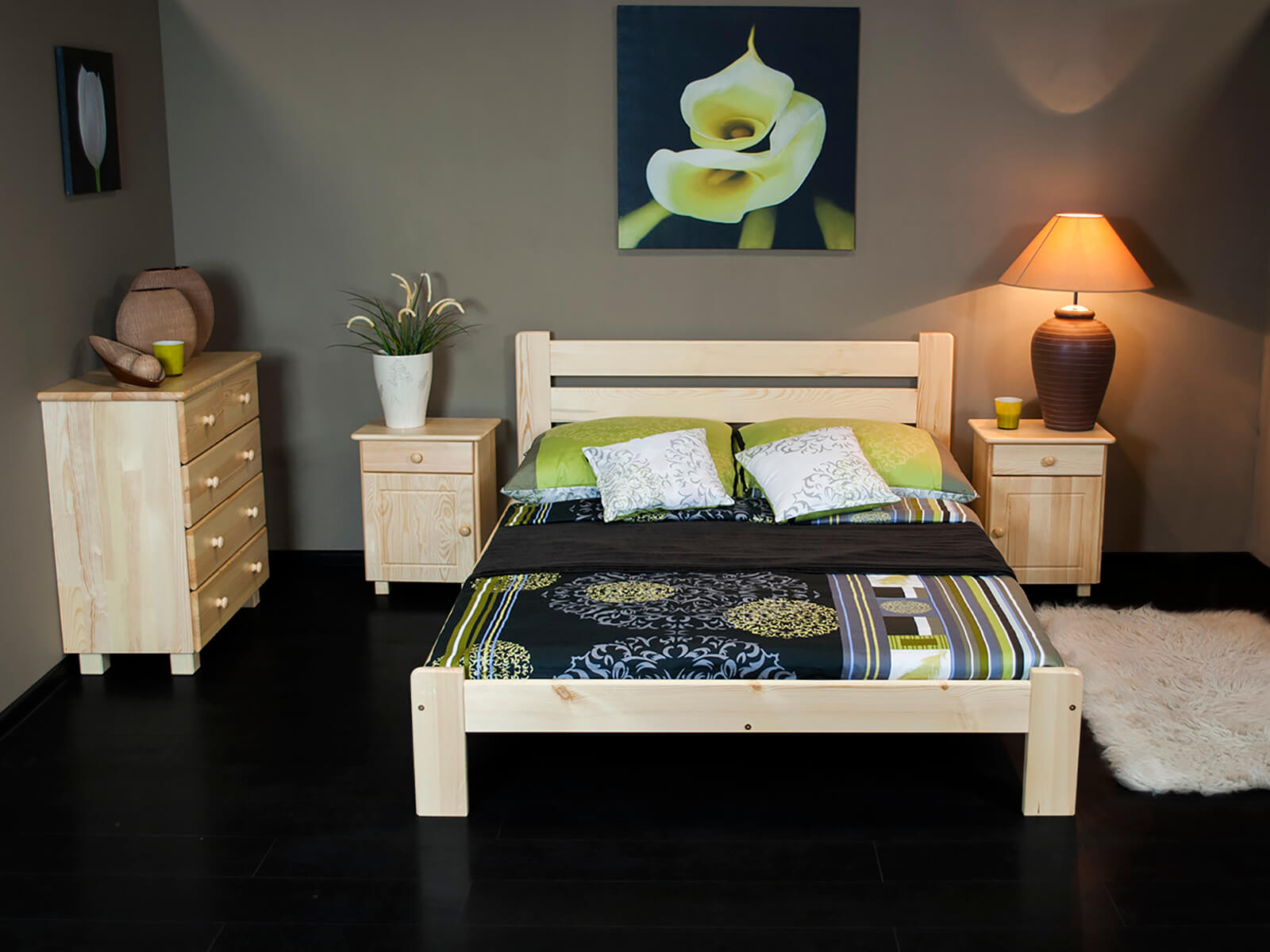 - természetes fenyőfából készült váz