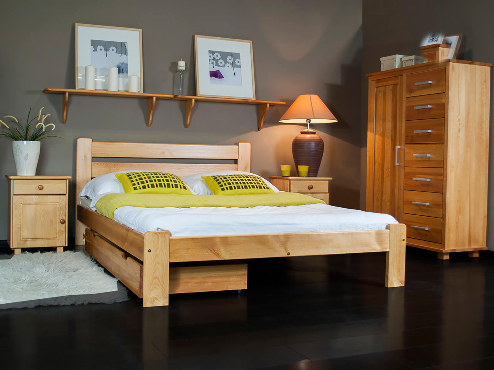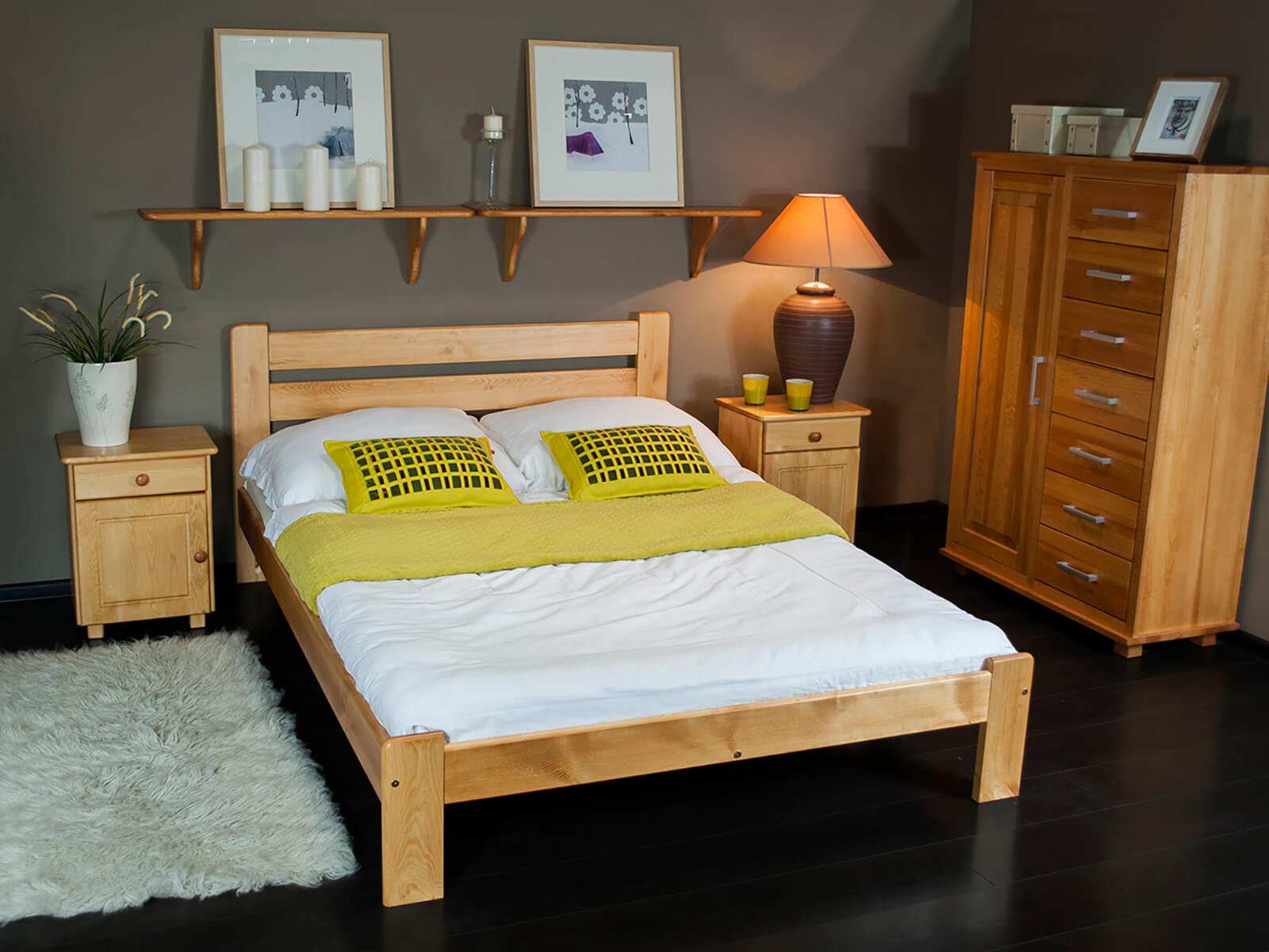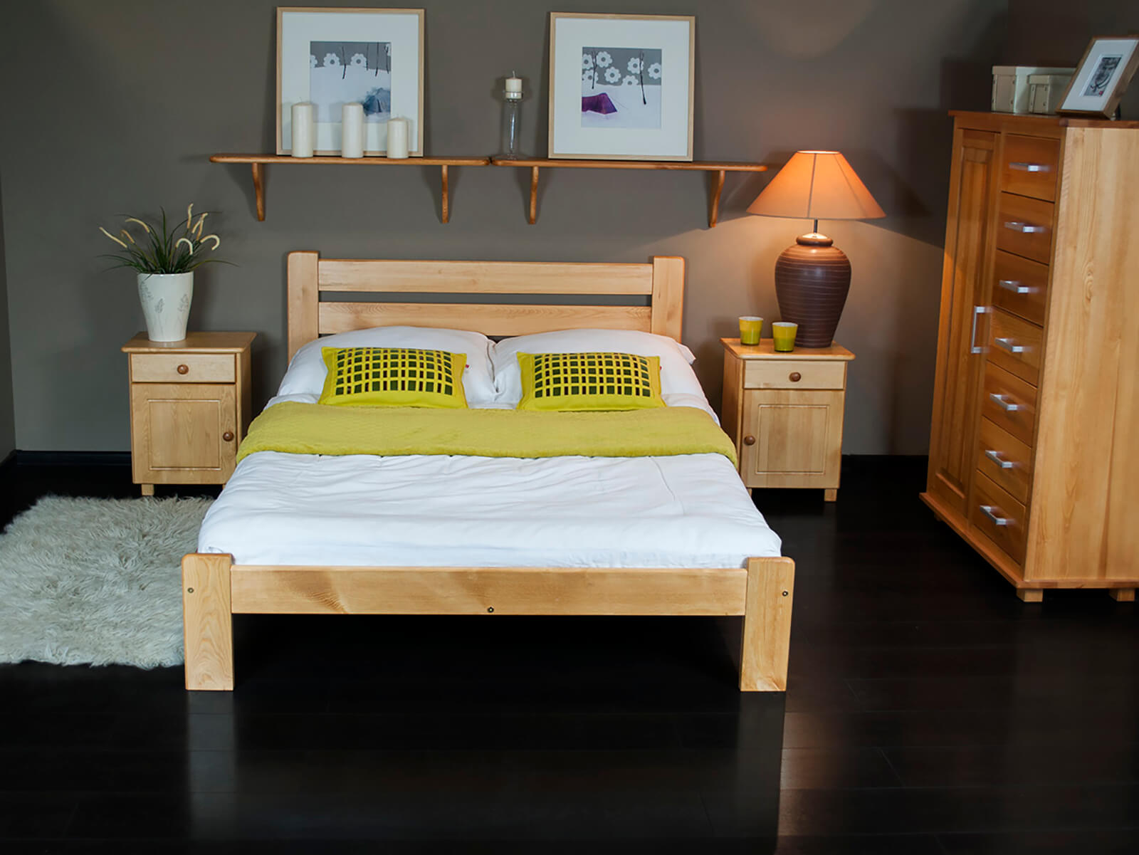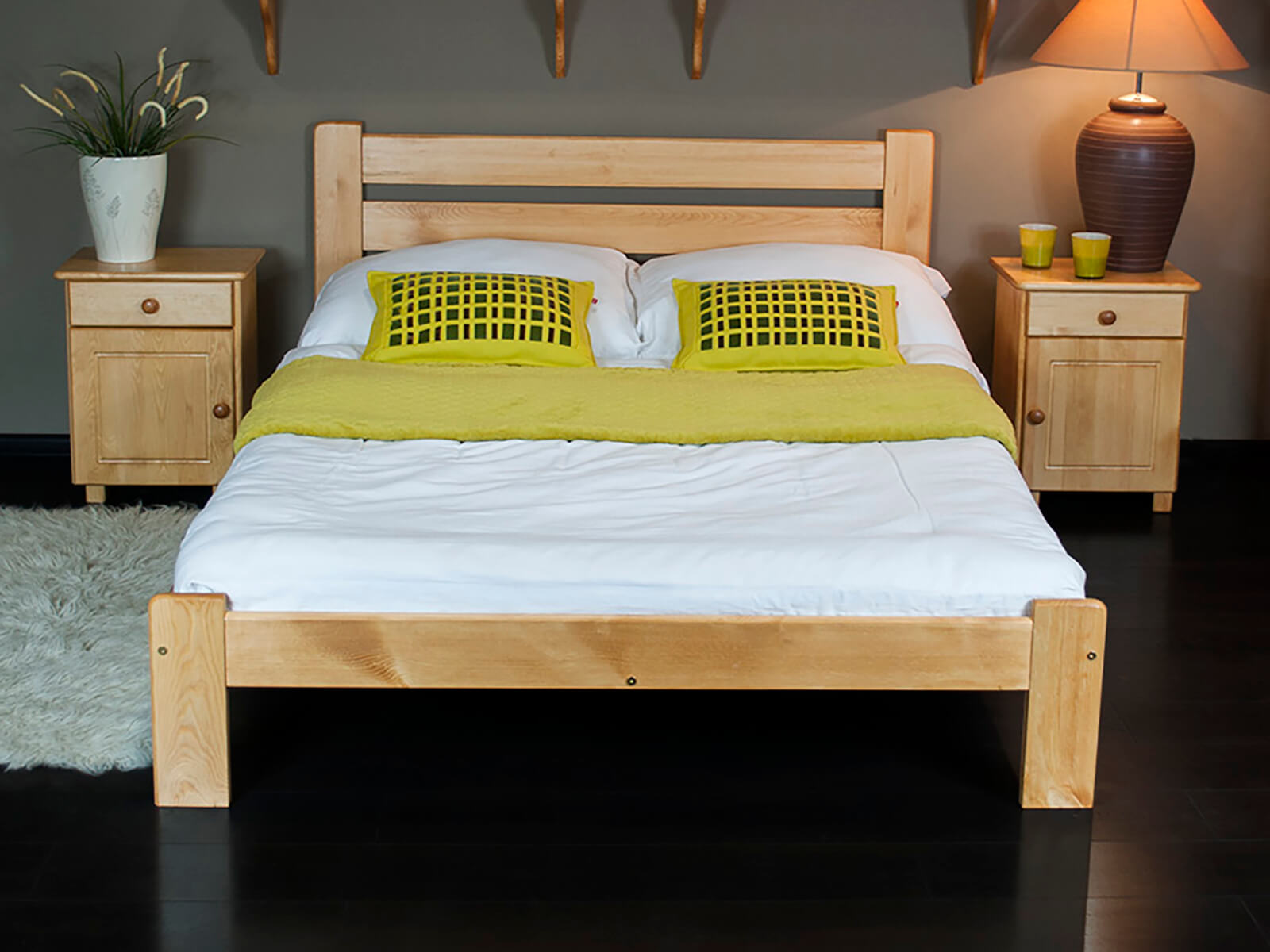 TermékleírásKétszemélyes ágy tömör fából 160x200 Eliza kizárólag természetes fenyőfából készült, ami masszív felépítést biztosít. Minimalista formája tökéletesen illeszkedik a klasszikus vagy modern lakberendezéshez. A bútor tökéletesen ötvözi az eleganciát és a kényelmet, sokoldalú jelleget kölcsönözve a hálószobának. Az egyszerű kialakítás dekoratív hangsúlyt ad a szobának, miközben a karbantartás egyszerű. Az Eliza modell harmóniát hoz a szobába és ideális feltételeket teremt a pihenéshez.