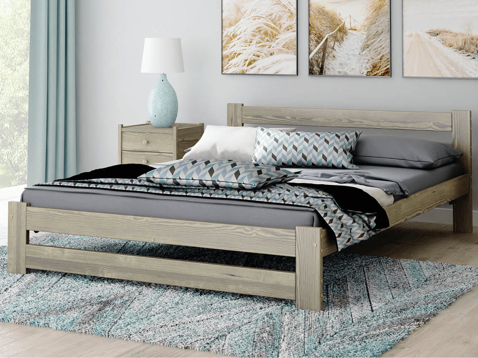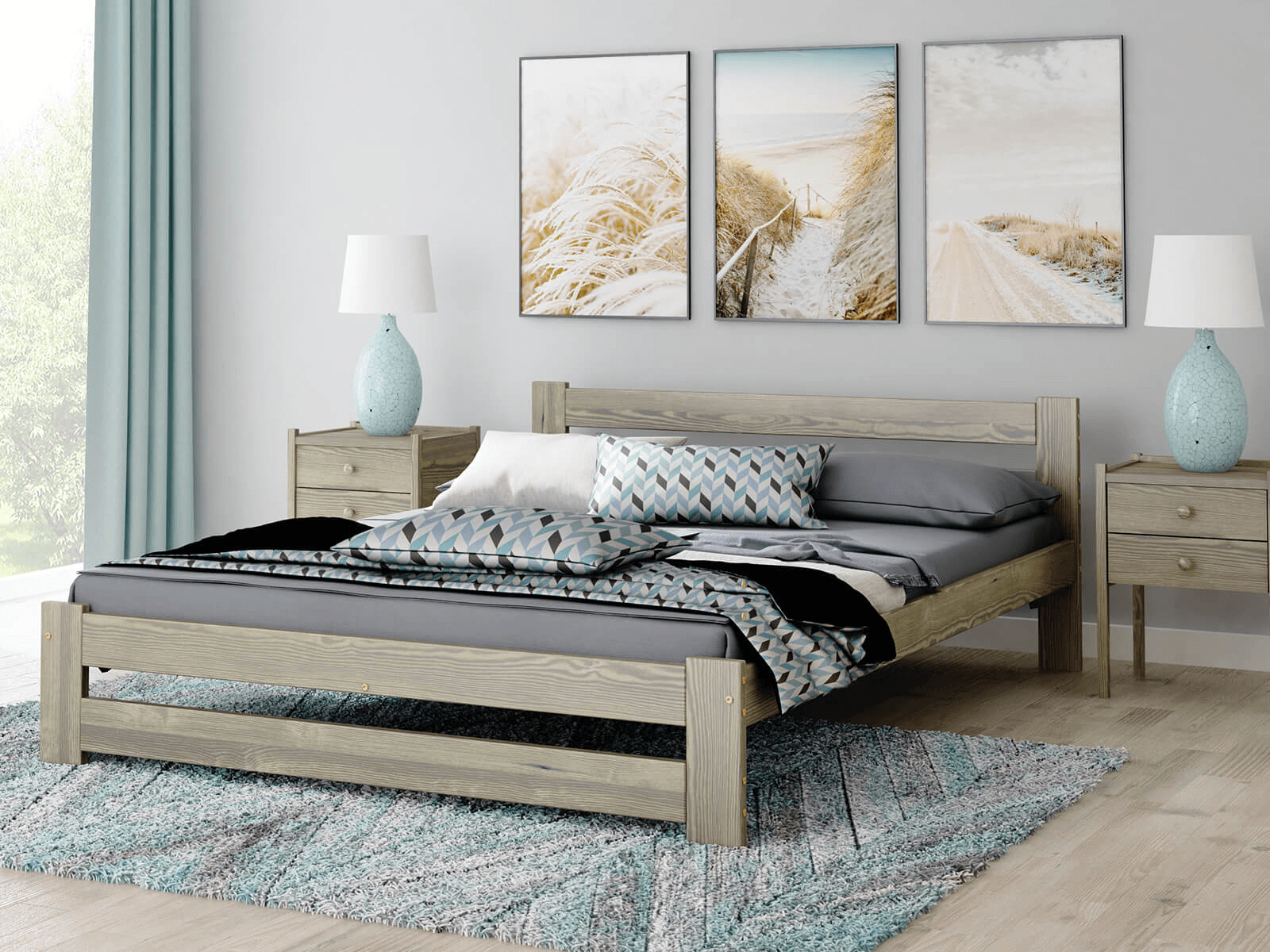 A készlethez tartozik egy rugalmas rács, amely 12 nyírfa lécből készül, amelyeket szövetszalaggal kötünk össze. Ez a bútor a legmagasabb minőségű fenyőfából készült, 3-szoros bevonattal, környezetbarát festékkel. Azon kevés cégek közé tartozunk, amelyek az Országos Higiéniai Intézet által tanúsított festékeket használnak a festéshez. Lakkjaink engedélyezettek olyan tárgyakra, amelyekkel gyermekek érintkeznek (a DIN EN 71 szabvány 3. része szerint).
