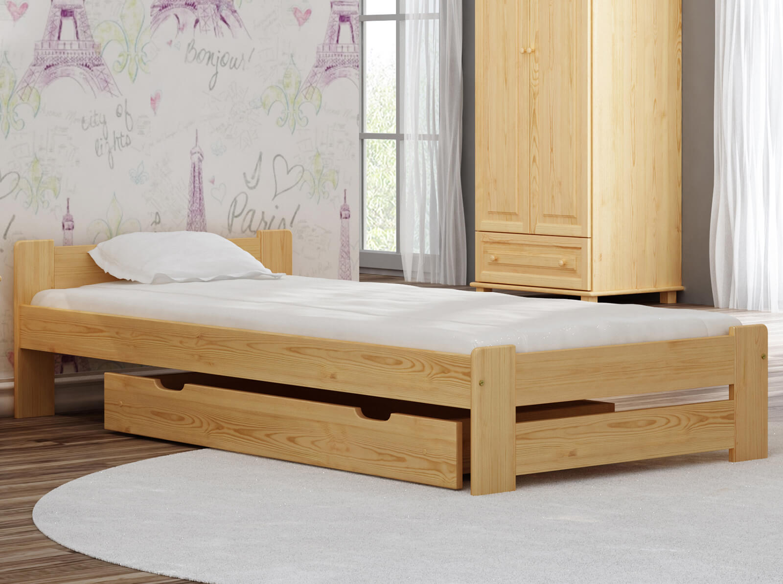 Az euro ágy teljes egészében természetes fenyőfából készült, ami masszív felépítést biztosít. A minimalista forma tökéletesen illeszkedik a klasszikus vagy modern lakberendezéshez. A bútor tökéletesen ötvözi az eleganciát és a kényelmet, így biztosítva a hálószoba sokoldalúságát. Az egyszerű kialakítás dekoratív hangsúlyt ad a szobának, miközben a karbantartás egyszerű. Az Euro modell harmóniát hoz a szobába és ideális feltételeket teremt a pihenéshez.