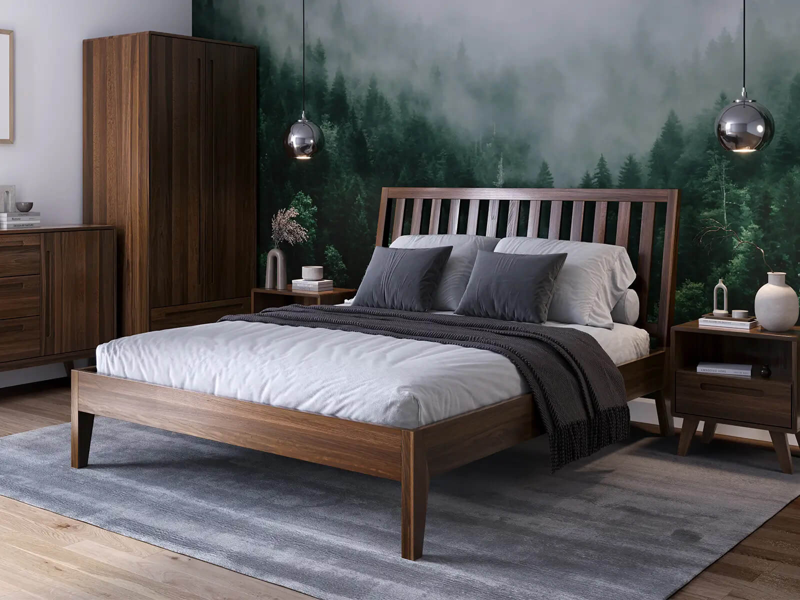 A Beskyd 01 ágyat olyan emberek számára készítették, akik egyedi hangulatot szeretnének teremteni hálószobájukban. A kiváló minőségű kivitelezés és a részletekre való odafigyelés olyan bútordarabbá teszi, amely nemcsak kényelmes alvóhelyet, hanem békével és pihenéssel teli légkört is biztosít. A bútor felületét diófa mázzal és egy átlátszó lakkréteggel borítják, amely fontos védelmet szolgál, védi a bútor felületét és kiemeli a fa természetes szépségét.
