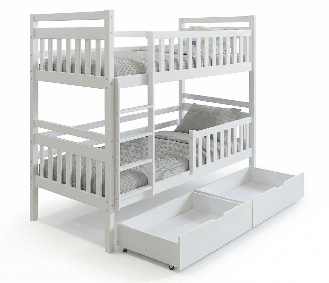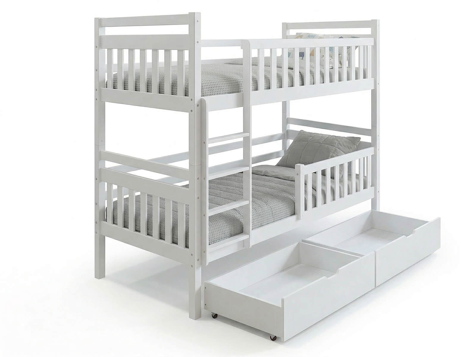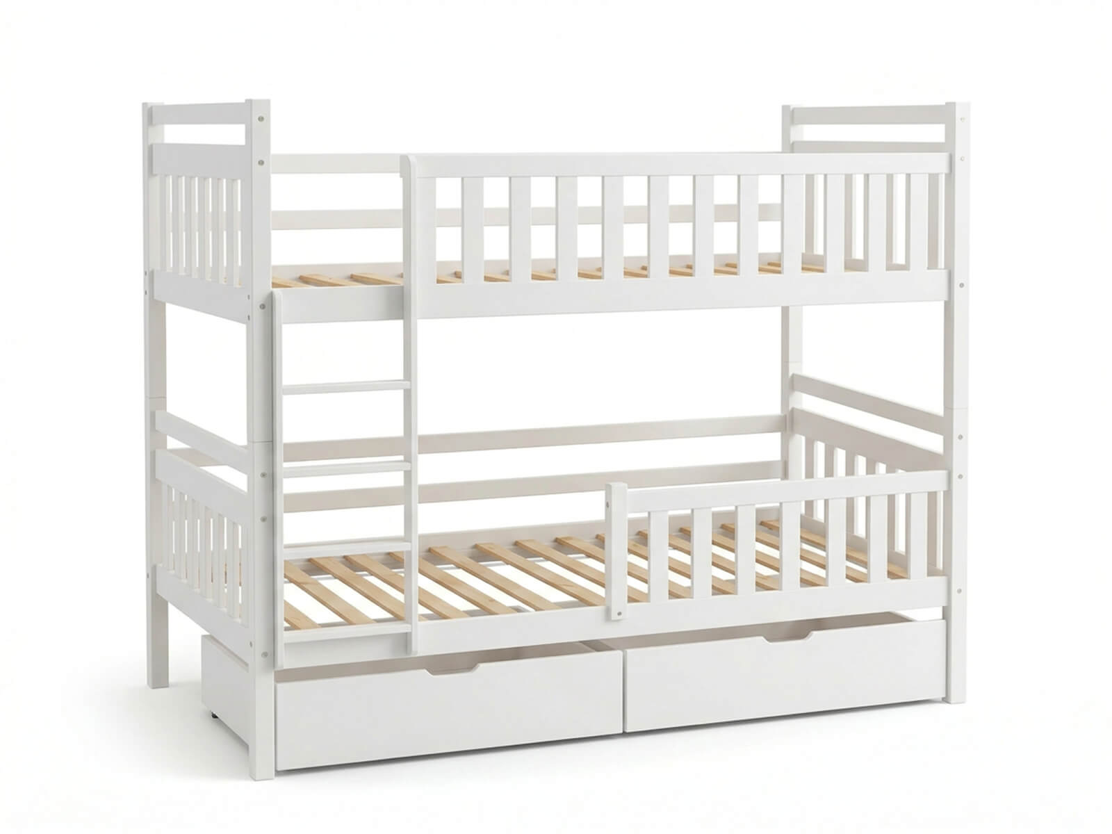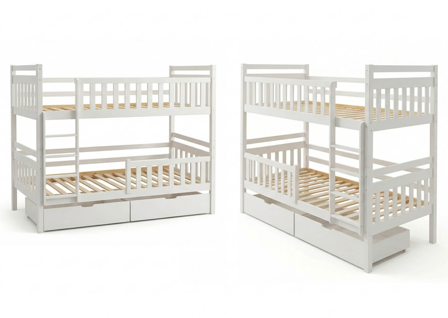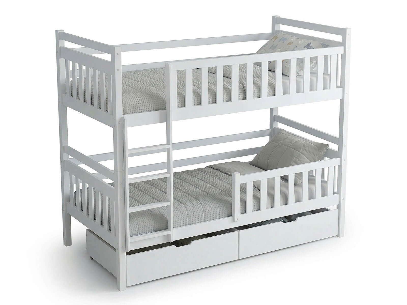 Fából készült emeletes ágy fiókokkal 90x200cm P4S fehér