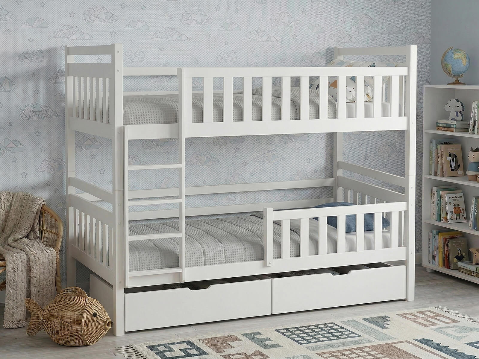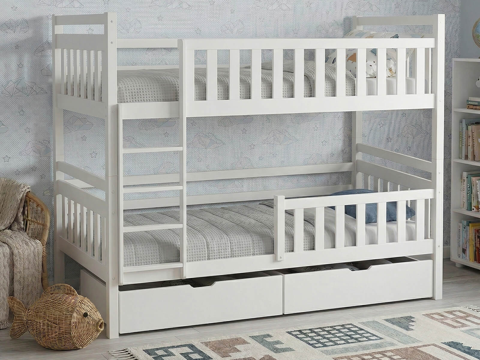 Két fekvőhely – A kialakítás kényelmes használatot tesz lehetővé két gyermek vagy testvér számára. A skandináv stílusú funkcionalitás maximálisan kihasználja a szoba terét.