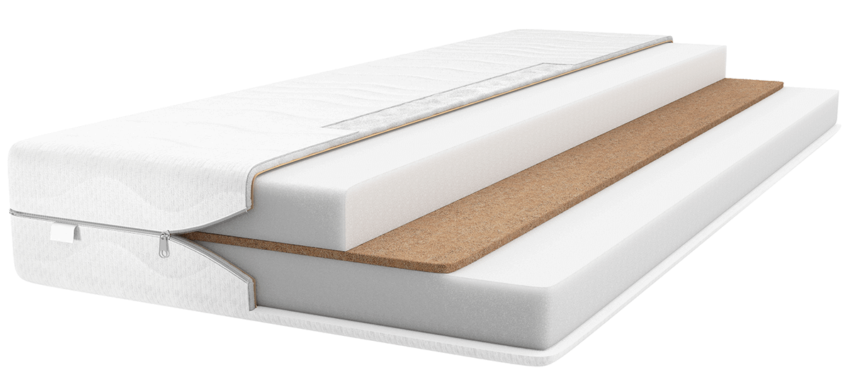 Két réteg poliuretán hab, köztük kókuszrost réteggel. A kókuszrost növeli a keménységet és stabilitást, biztosítva a gerinc megfelelő alátámasztását. Ezen felül a felső rétegben profilozott (molet) hab található, amely mikro-masszázs hatást biztosít. Puha, cipzáras huzattal rendelkezik, amely könnyen levehető és mosható. A matrac magassága 12 cm. Hipoallergén anyagok.