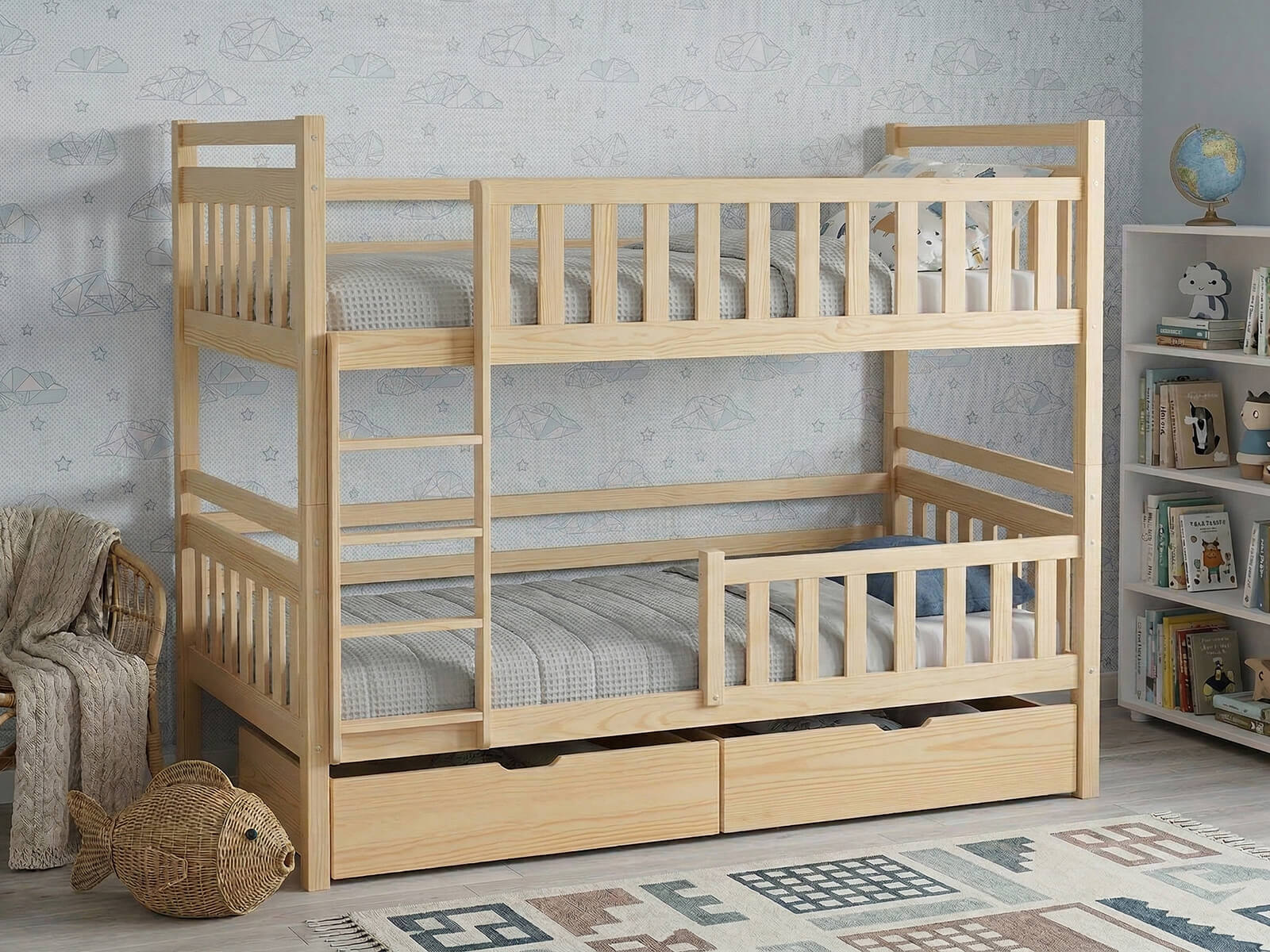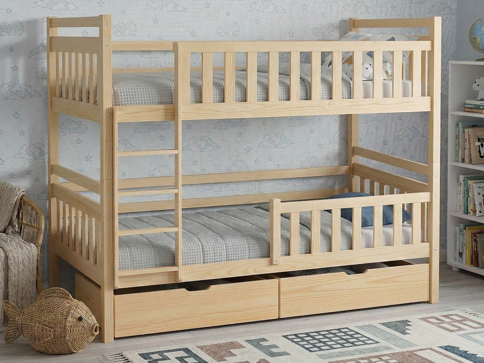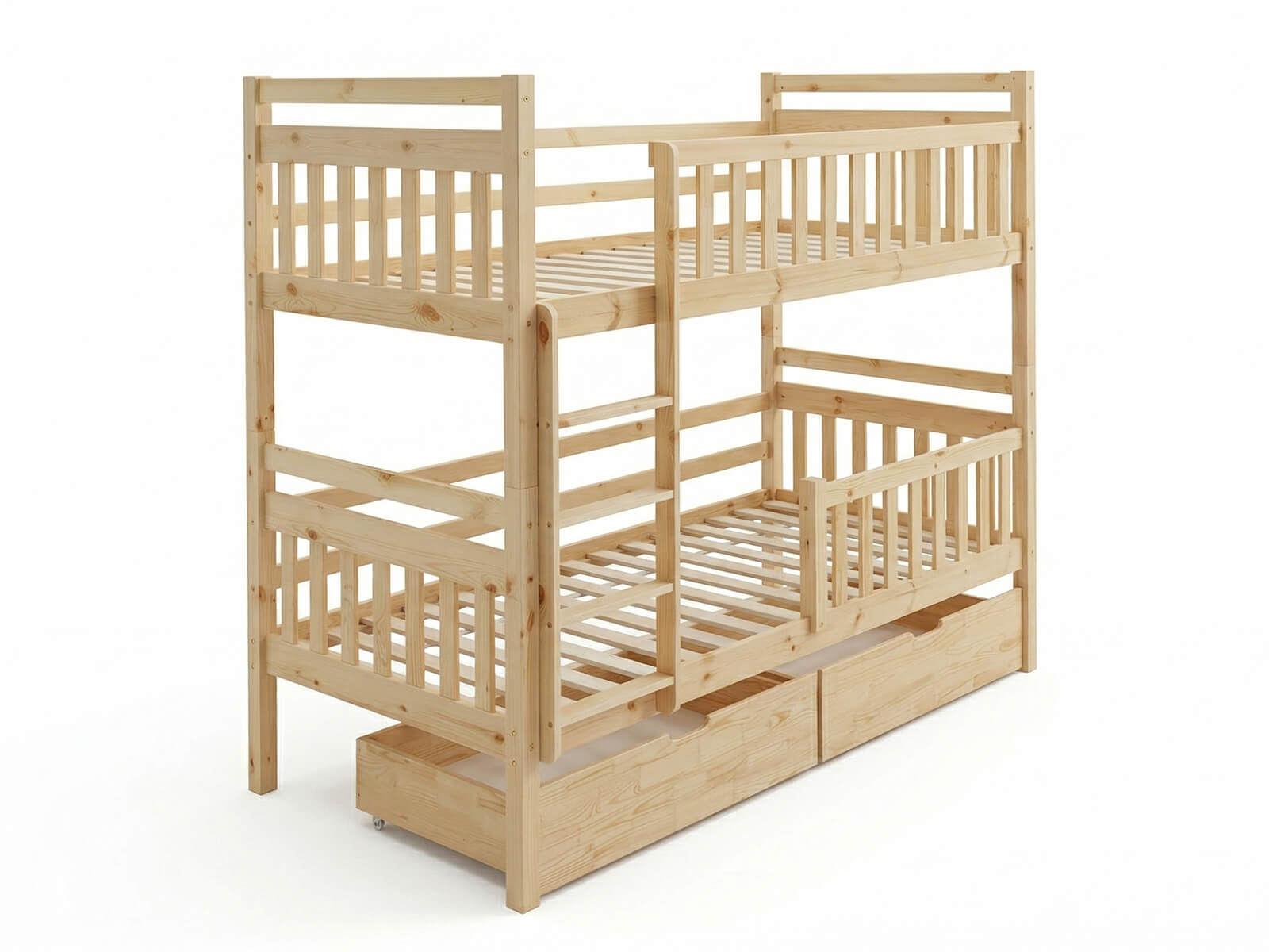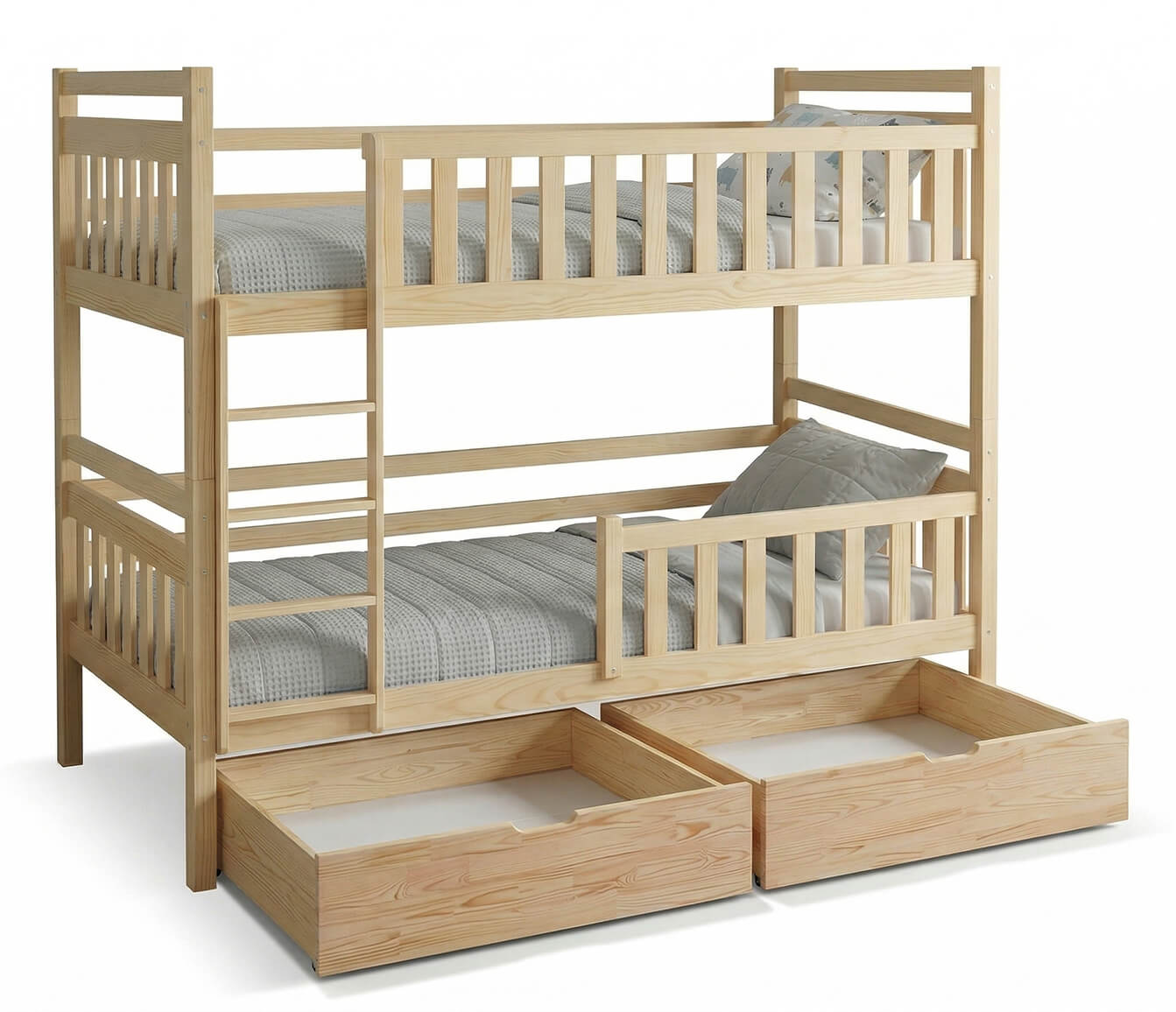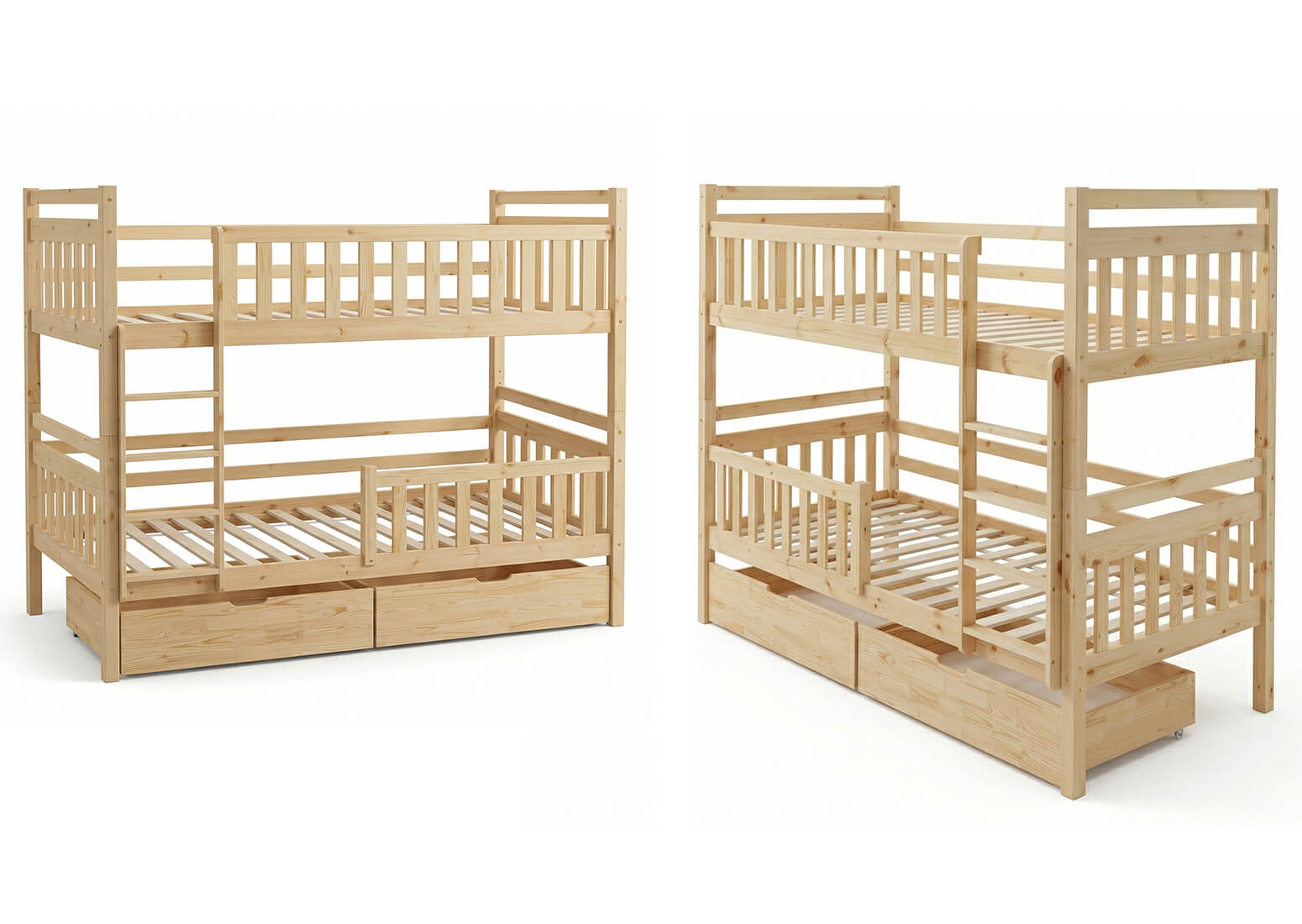 Fából készült emeletes ágy fiókokkal 90x200cm P4S fenyő