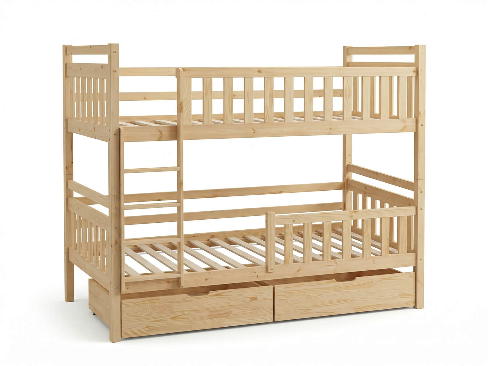 Gondoskodj gyermekeid kényelméről és biztonságáról egy fenyő emeletes ággyal, amely mindkét oldalra szerelhető leesésgátlóval rendelkezik. Ez a megoldás nyugodt alvást biztosít fiúk és lányok számára egyaránt, a szülőknek pedig biztonságérzetet ad.
