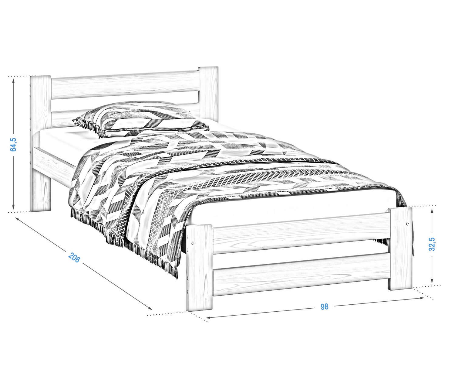 A készlethez tartozik egy rugalmas rács, amely 12 nyírfa lécből készül, amelyeket szövetszalaggal kötünk össze. Ez a bútor a legmagasabb minőségű fenyőfából készült, 3-szoros bevonattal, környezetbarát festékkel. Azon kevés cégek közé tartozunk, amelyek az Országos Higiéniai Intézet által tanúsított festékeket használnak a festéshez. Lakkjaink engedélyezettek olyan tárgyakra, amelyekkel gyermekek érintkeznek (a DIN EN 71 szabvány 3. része szerint).