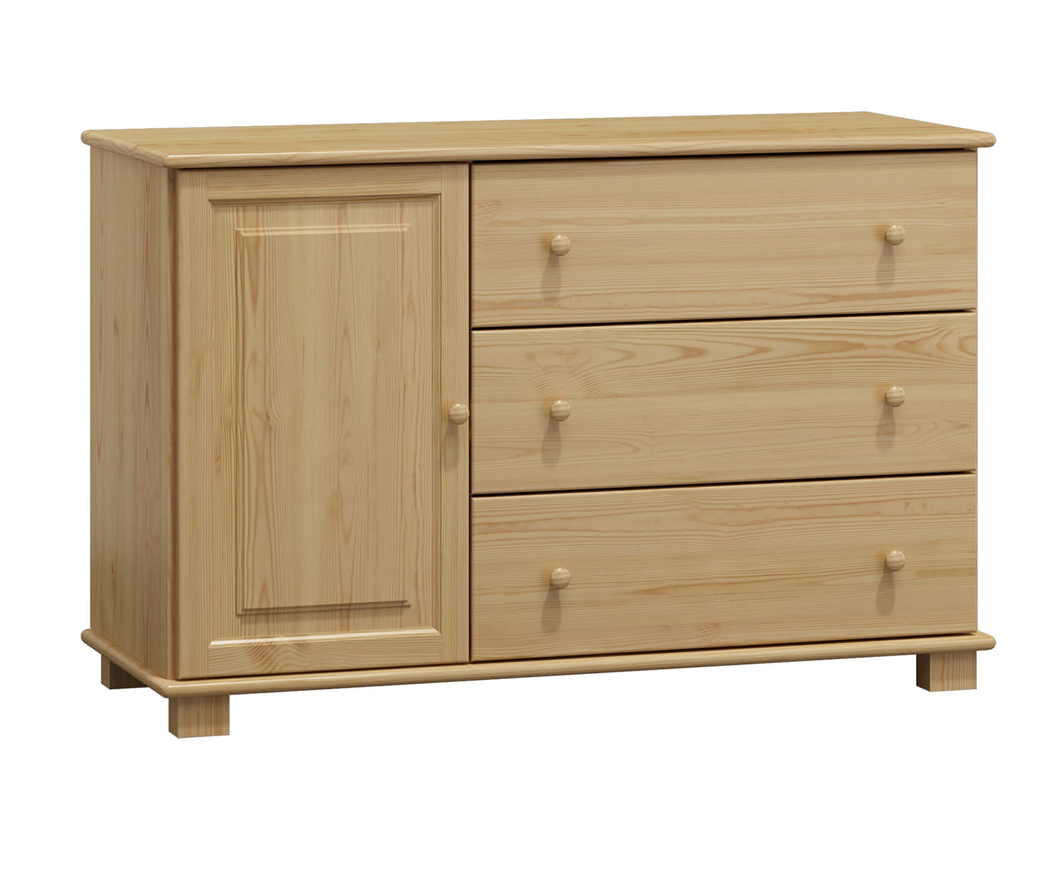 | komód #35 mélység 42Fenyőfából készült, ami tartós konstrukciót biztosít. Ergonomikus formája lehetővé teszi a dolgok tárolását és rendben tartását. A síneknek köszönhetően a fiókok nagyon könnyen kicsúsztathatók, ami hozzájárul a kényelmes használathoz. Minimalista kialakításának köszönhetően klasszikus és modern enteriőrökbe egyaránt illik. A természetes fából készült bútordarab ízléses dekorációs elemként funkcionál. A bútor a legjobb minőségű fenyőfából készült, és 3 réteg környezetbarát lakkréteggel festett. Azon kevés cégek közé tartozunk, amelyek az Állami Higiéniai Állomás által tanúsított lakkokat használnak. Az általunk használt lakkok engedélyezettek olyan tárgyakra, amelyekkel gyermekek érintkeznek (DIN EN 71, 3. számú szabványnak való megfelelés). A terméket csomagban szállítjuk, és önszerelésre szántuk. |