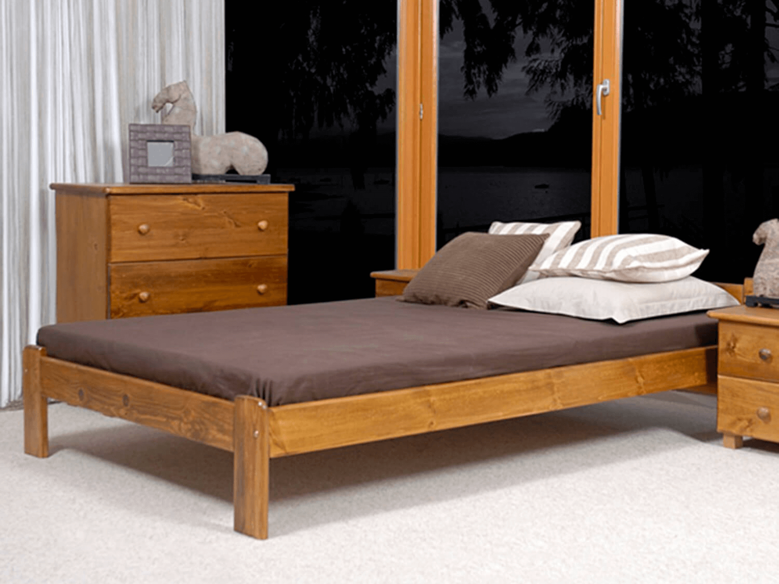 A Jasnena ágy teljes egészében természetes fenyőfából készült, ami masszív felépítést biztosít. A minimalista forma tökéletesen illeszkedik a klasszikus vagy modern lakberendezéshez. A bútor tökéletesen ötvözi az eleganciát és a kényelmet, így biztosítva a hálószoba sokoldalúságát. Az egyszerű kialakítás dekoratív hangsúlyt ad a szobának, miközben a könnyű karbantartás is megmarad. A Clarity modell harmóniát hoz a szobába és ideális feltételeket teremt a pihenéshez.