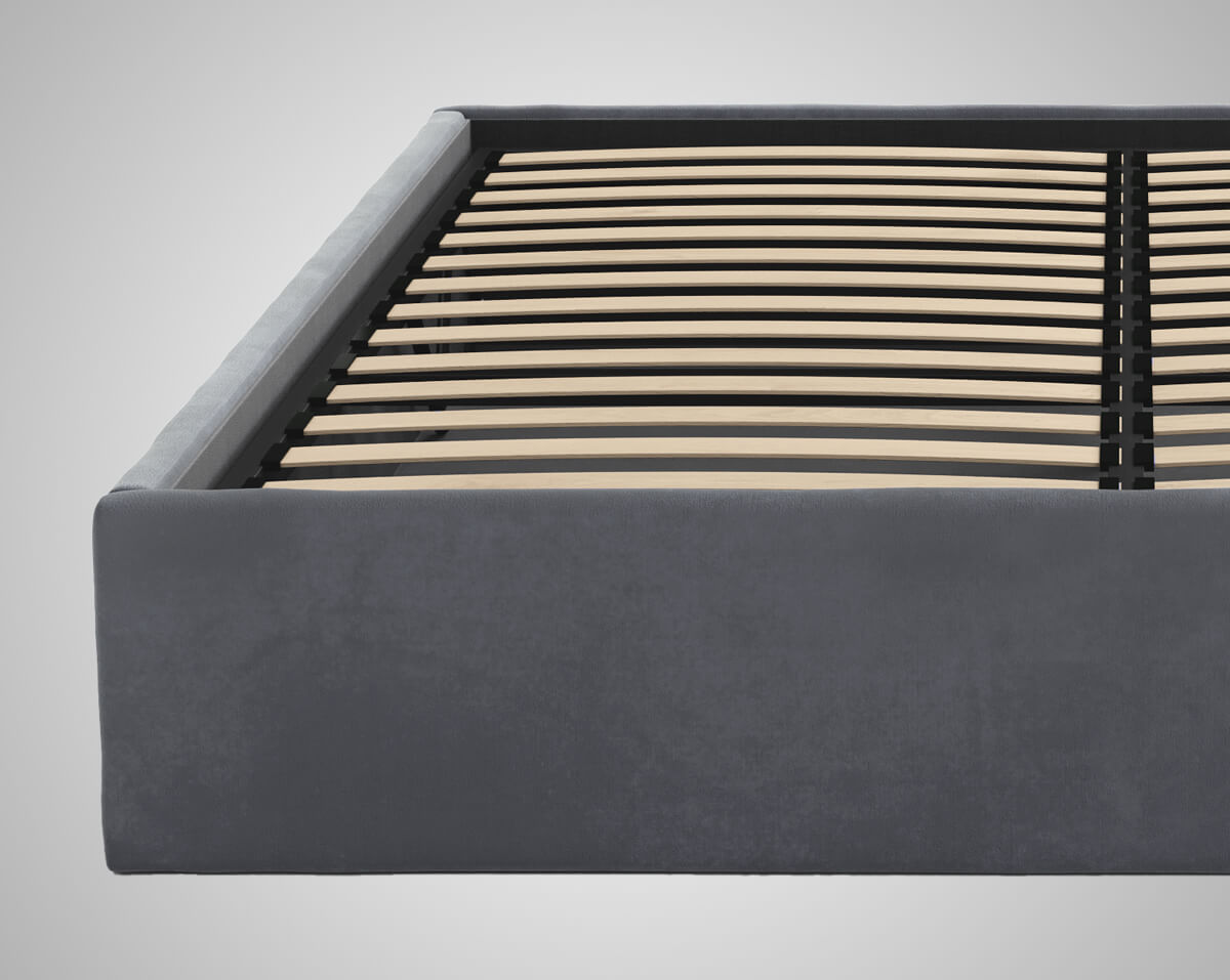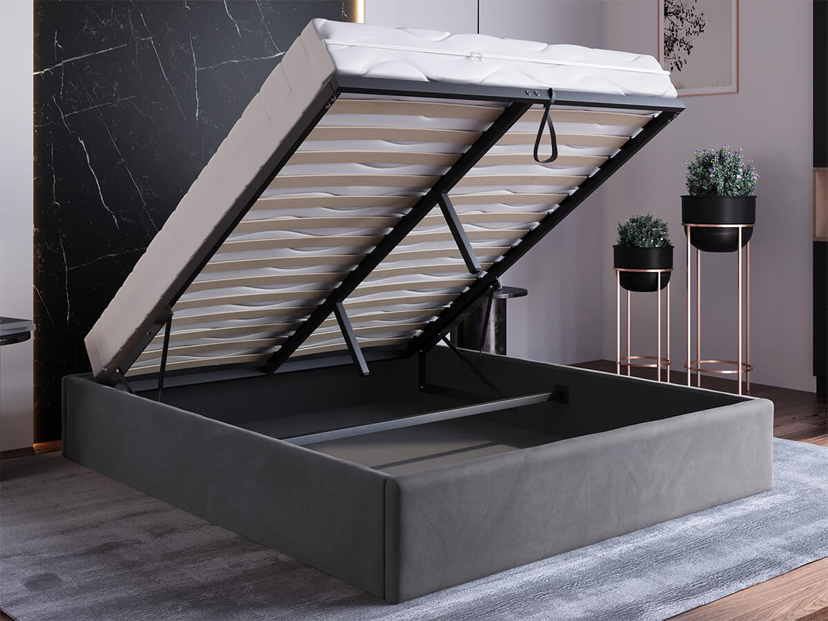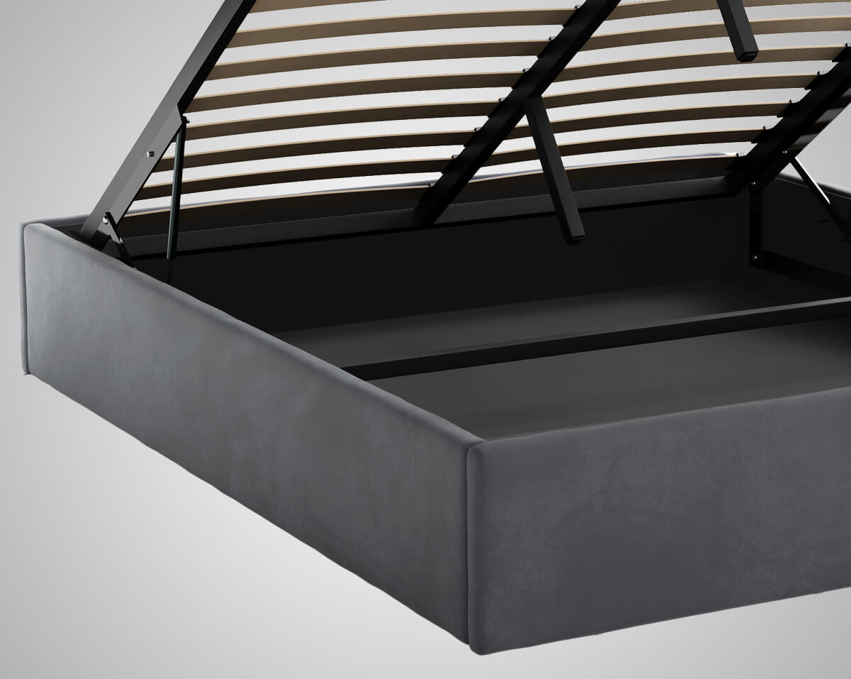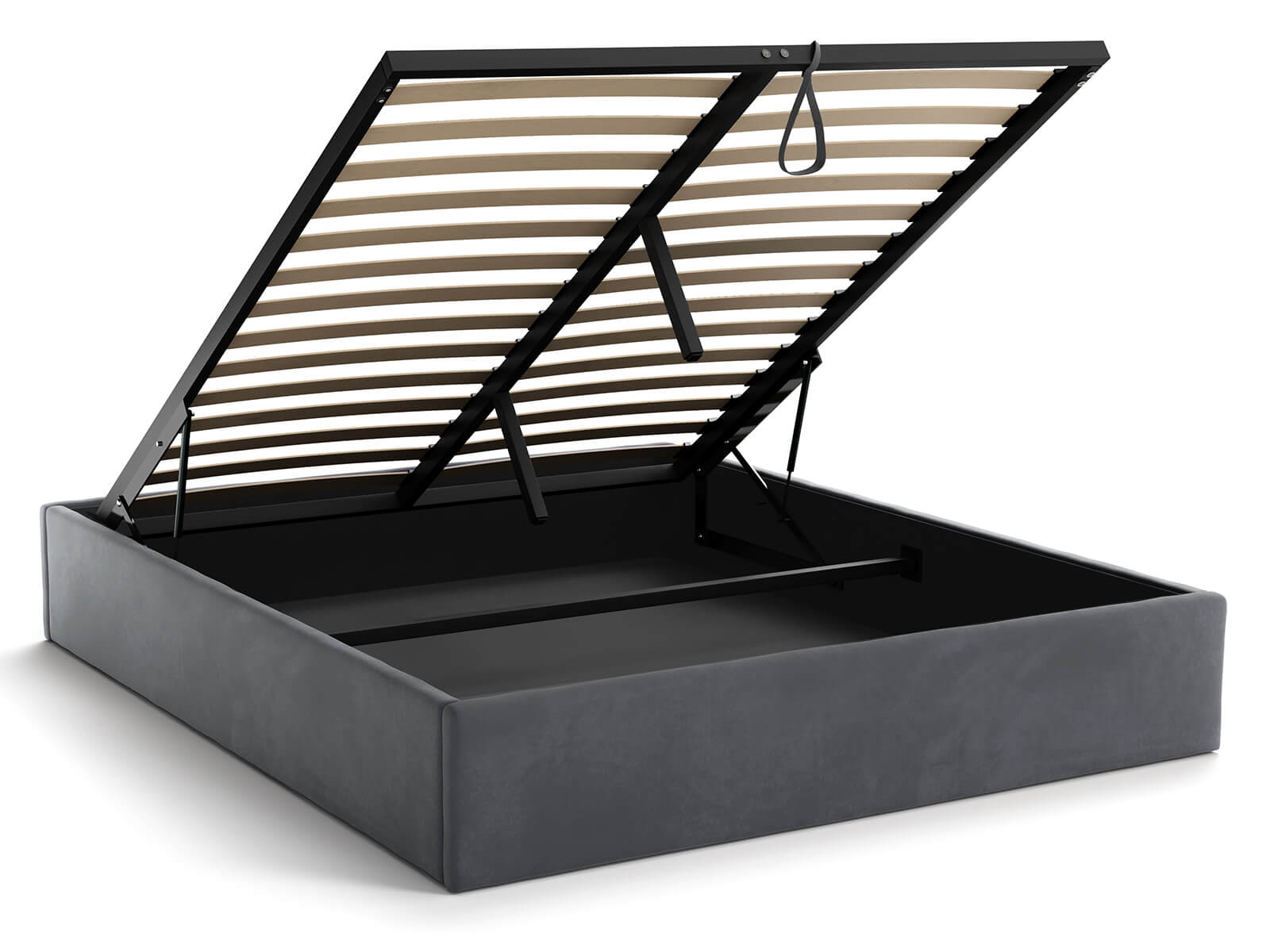 Kárpitozott ágy tárolóhellyel 160x200 fejtámla nélkül BOX Line Grafit Velvet