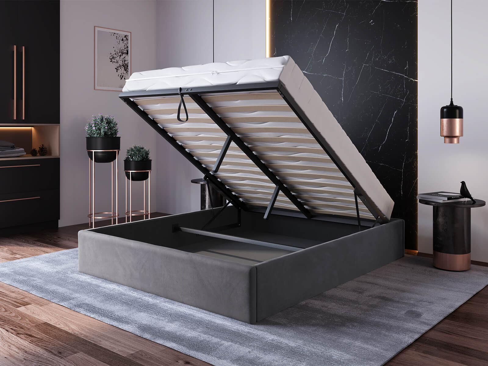 Kárpitozott ágy tárolóhellyel 180x200 fejtámla nélkül BOX Line Grafit Velvet