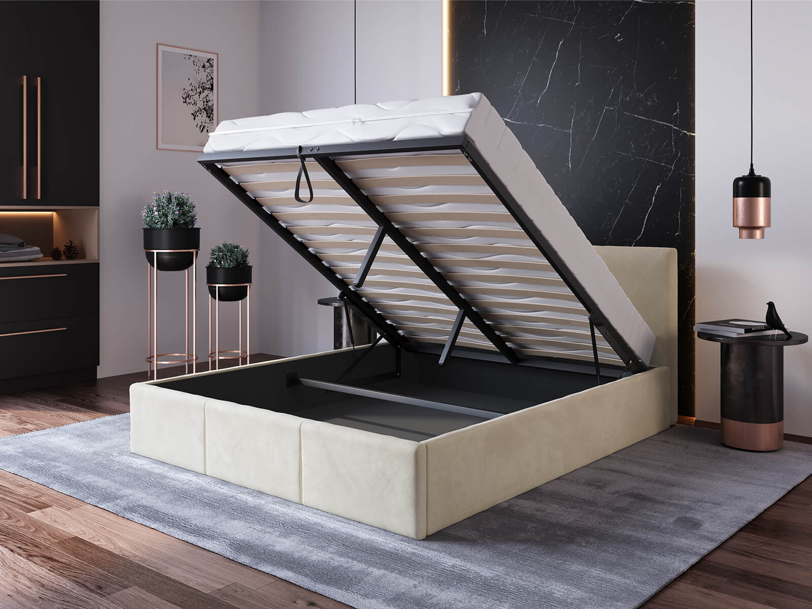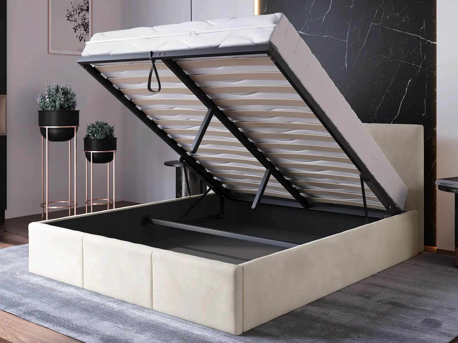 A Top Line 7 ágy több, mint egy egyszerű alvóbútor. Emelőkerettel van felszerelve, amely lehetővé teszi a könnyű hozzáférést az ágy alatti térhez. A keret 2x14 lécből áll, amelyek masszív fémkeretre vannak szerelve, erős 80N gázemelőkkel, amelyek kivételes matrac alátámasztást és az ágyneműtartály könnyű kinyitását biztosítják. Ez egy olyan hely, ahol ágyneműt, takarókat vagy más olyan tárgyakat tárolhat, amelyeket nem szeretne szem előtt tartani.