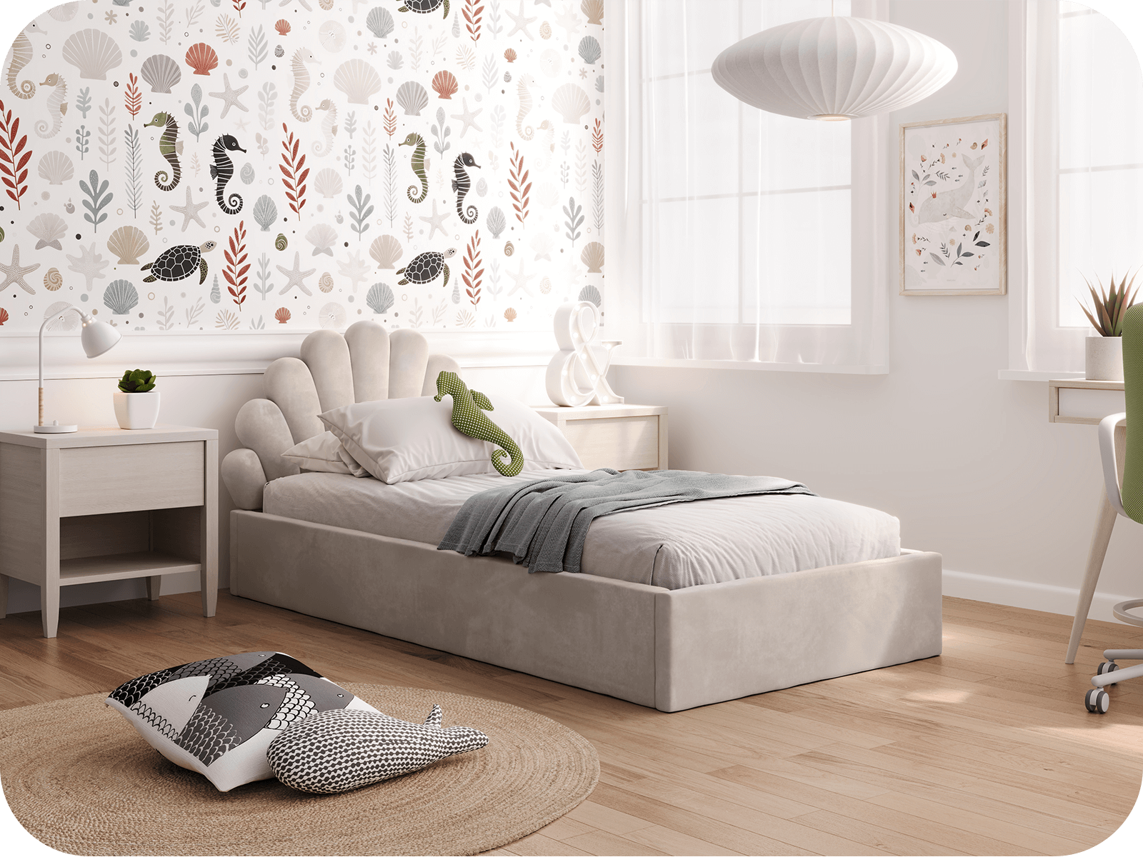 Design és funkcionalitás - A víz alatti világ ihlette ágy kagyló alakú fejtámlája minden álmot a víz alatti kalandok varázslatos földjévé varázsol. Az ágy egyedi kialakítása nemcsak kényelmes alvást garantál, hanem lenyűgöző álmokat is az óceán titokzatos mélységeiről.