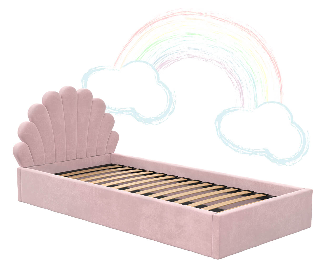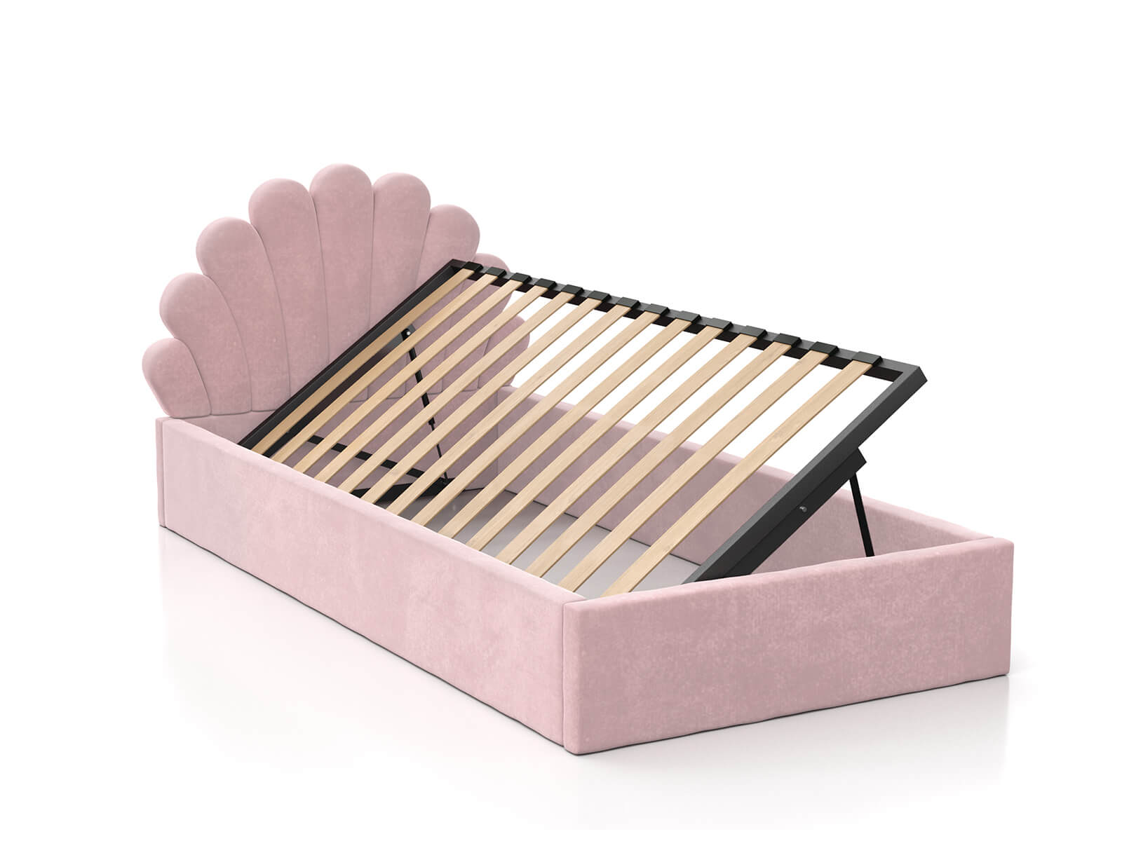 Kárpitozott gyerekágy 90x200 as konténerrel és kerettel, rózsaszín színű Velvet Kids Line 3 Kagyló