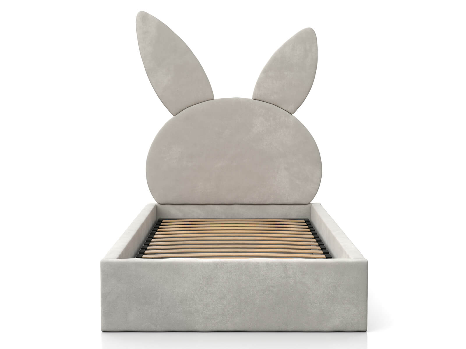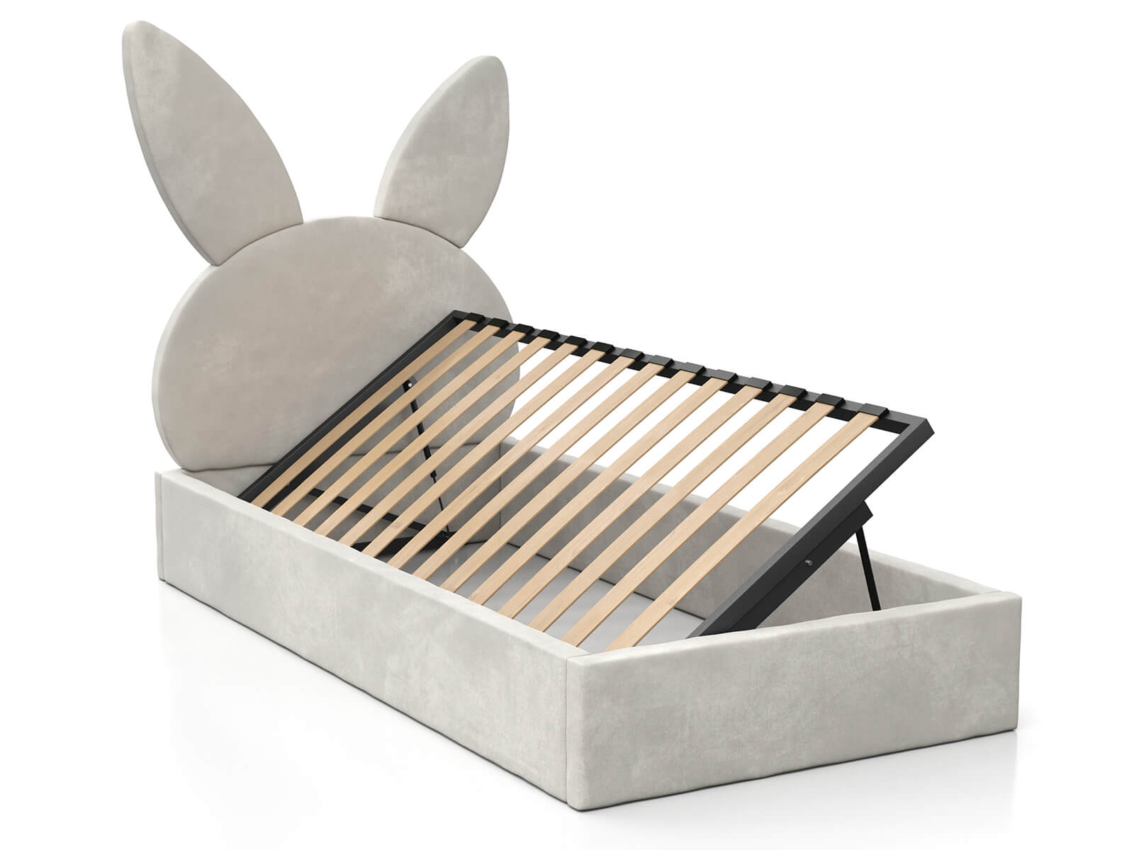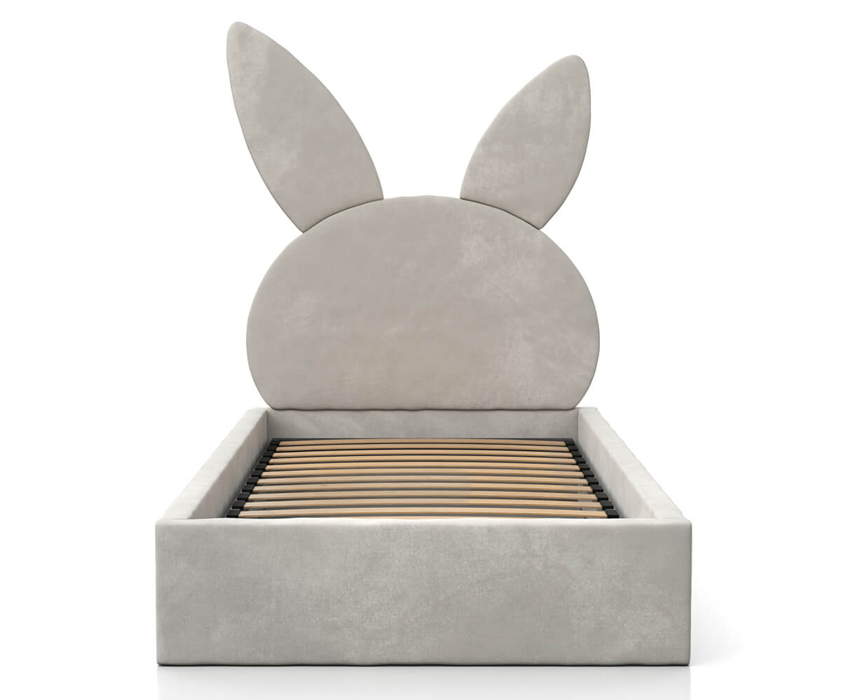 Kárpitozott gyerekágy 90x200 as konténerrel és kerettel, szürke színű Velvet Kids Line 2 Nyúl