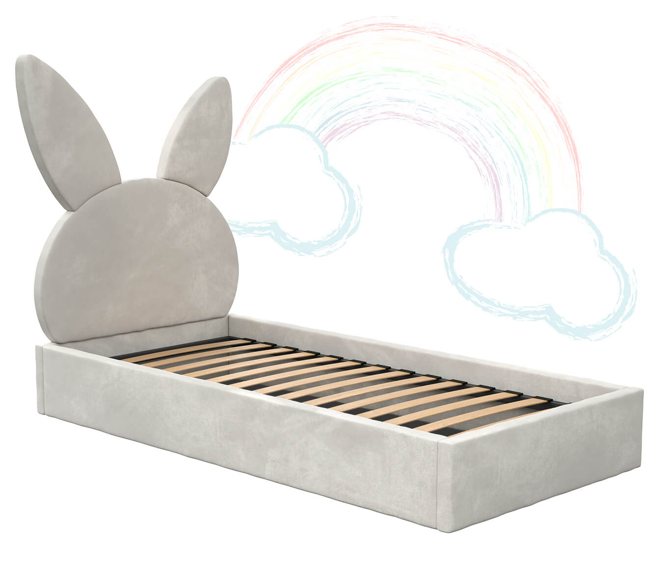 Design és funkcionalitás - Az ágy nemcsak esztétikájával nyűgöz le, hanem praktikus is. A nyúlfülek, amelyek az egész báját növelik, könnyen szétszedhetők, így az ágy együtt nő a gyermekkel, és hosszú évekig használható. Tökéletes megoldás azoknak a szülőknek, akik tartós és funkcionális gyermekbútort keresnek.