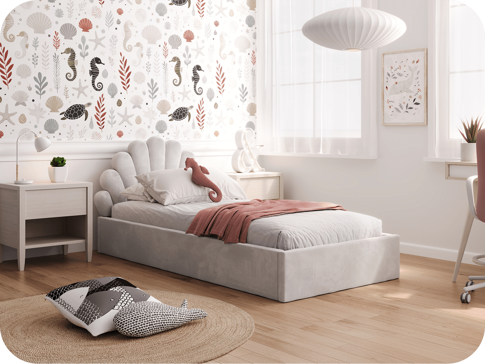 Design és funkcionalitás - A víz alatti világ ihlette ágy kagyló alakú fejtámlája minden álmot a víz alatti kalandok varázslatos földjévé varázsol. Az ágy egyedi kialakítása nemcsak kényelmes alvást garantál, hanem lenyűgöző álmokat is az óceán titokzatos mélységeiről.