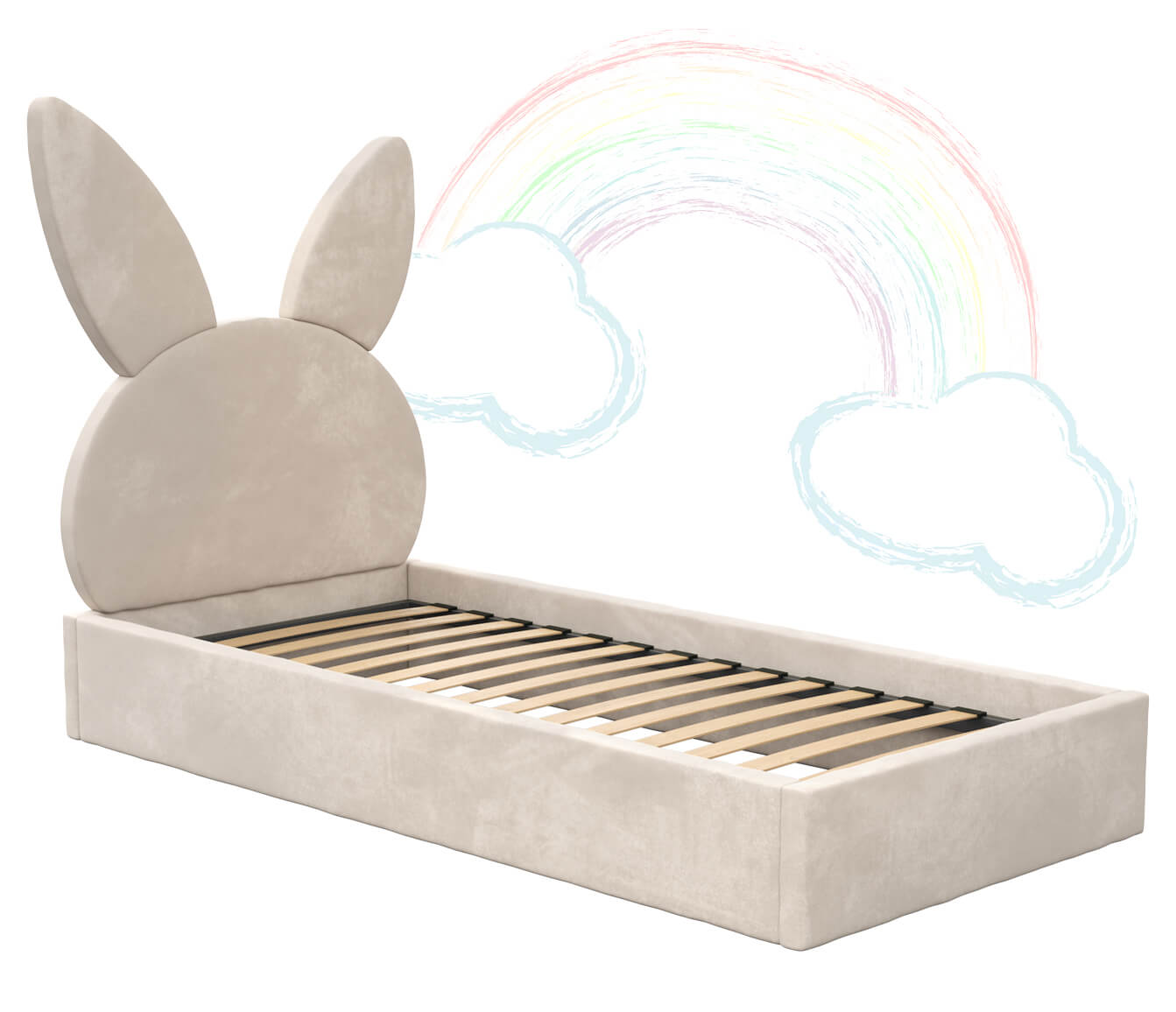 Kárpitozott gyerekágy kerettel 90x200 bézs Velvet Kids Line 2 Nyúl