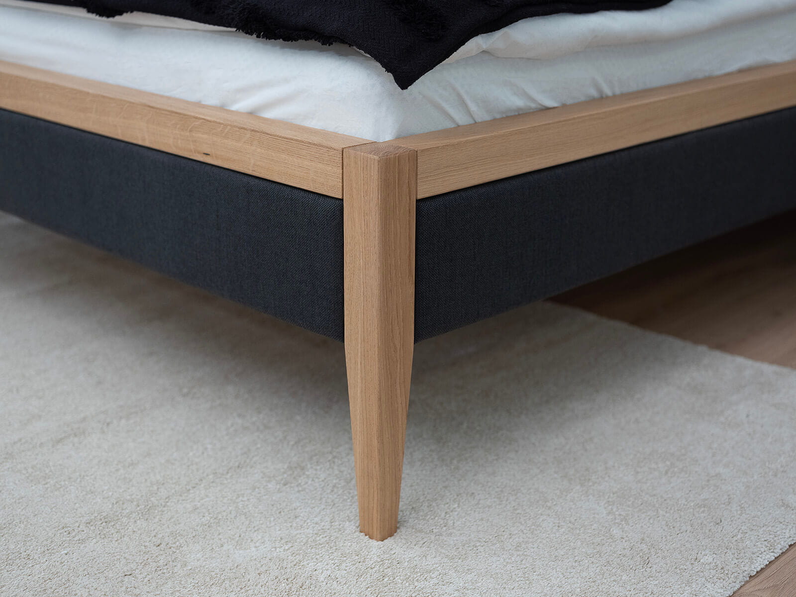 Az ágy készítéséhez felhasznált anyagok gondosan válogatottak. A tölgyfa hosszú élettartamú, nemes anyag. Az ágy erre az alapanyagra épülő kivitelezése biztosítja a tartósságot és a nyugodt alvást. Az olajviaszos felületkezelés kiemeli az eredeti szemcsemintázatot. Az Inari szövet egy nagyon jó műszaki paraméterekkel rendelkező anyag, nagy kopásállósággal és érdekes, vásznat imitáló szövéssel. A három elérhető színválaszték lehetővé teszi, hogy ízléses, skandináv stílusú hálószobabelsőt alakítson ki. Ha más színű vagy típusú kárpitszövet érdekli, tekintse meg az alábbiakban elérhető mintákat.