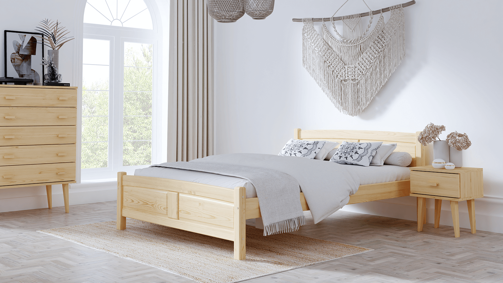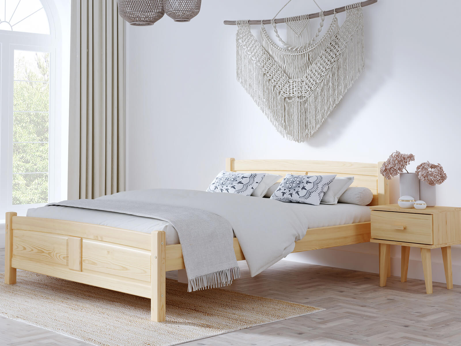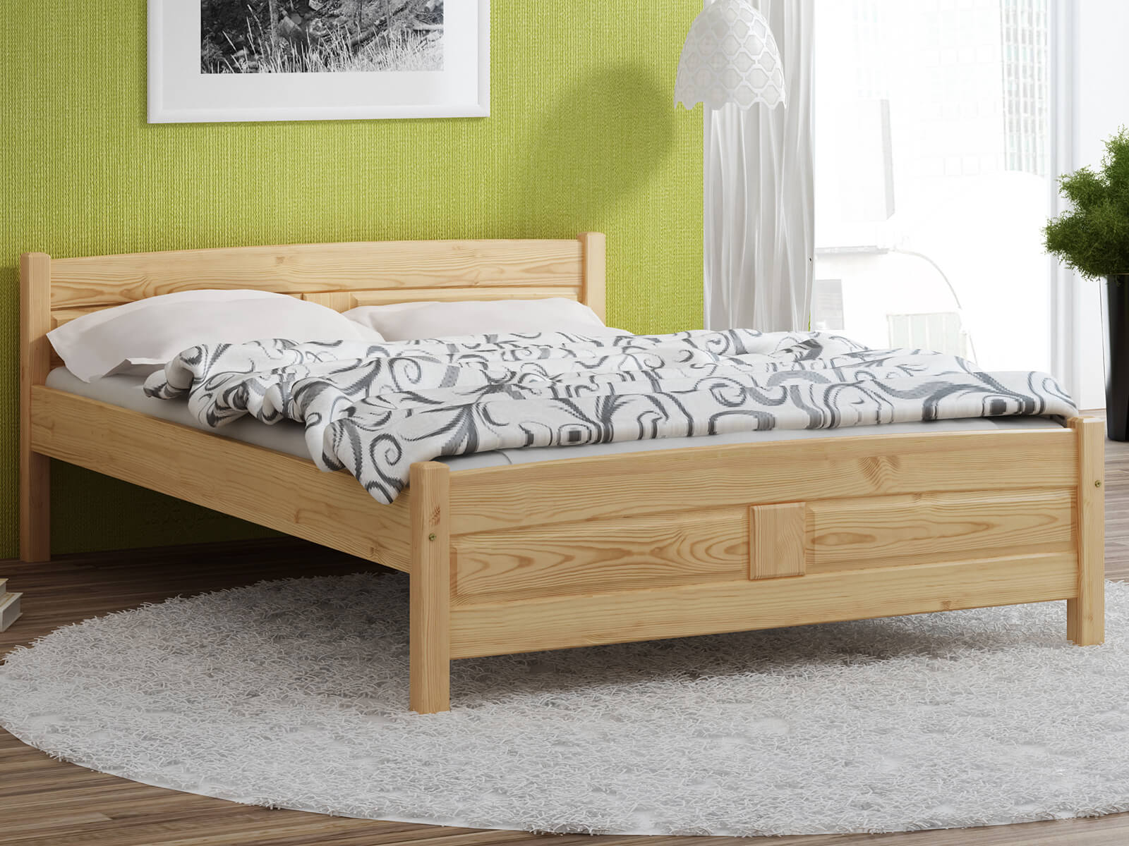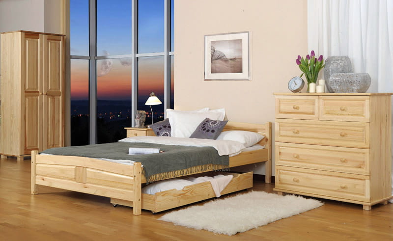 A Květa ágy kizárólag természetes fenyőfából készült, ami masszív felépítést biztosít. A minimalista forma tökéletesen illeszkedik a klasszikus vagy modern lakberendezéshez. A bútor tökéletesen ötvözi az eleganciát és a kényelmet, így biztosítva a hálószoba sokoldalúságát. Az egyszerű kialakítás dekoratív hangsúlyt ad a szobának, miközben a karbantartás egyszerű. A Flower modell harmóniát hoz a szobába és ideális feltételeket teremt a pihenéshez.