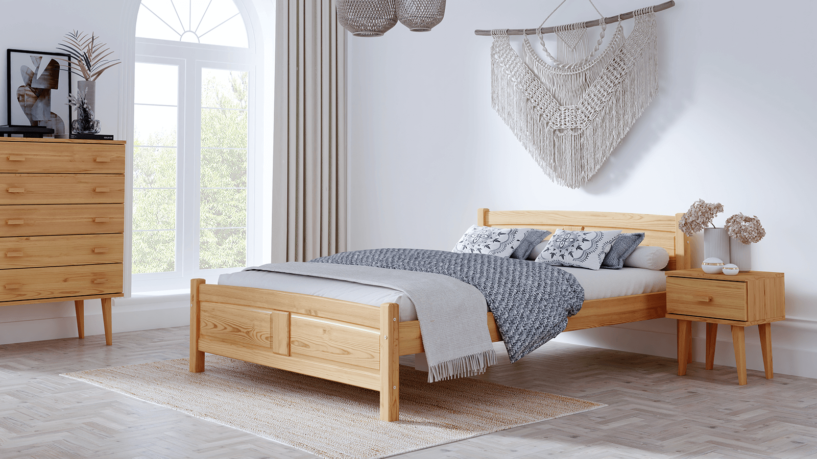 A Květa ágy kizárólag természetes fenyőfából készült, ami masszív felépítést biztosít. A minimalista forma tökéletesen illeszkedik a klasszikus vagy modern lakberendezéshez. A bútor tökéletesen ötvözi az eleganciát és a kényelmet, így biztosítva a hálószoba sokoldalúságát. Az egyszerű kialakítás dekoratív hangsúlyt ad a szobának, miközben a karbantartás egyszerű. A Flower modell harmóniát hoz a szobába és ideális feltételeket teremt a pihenéshez.