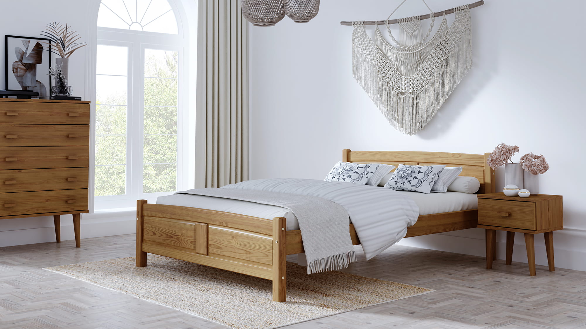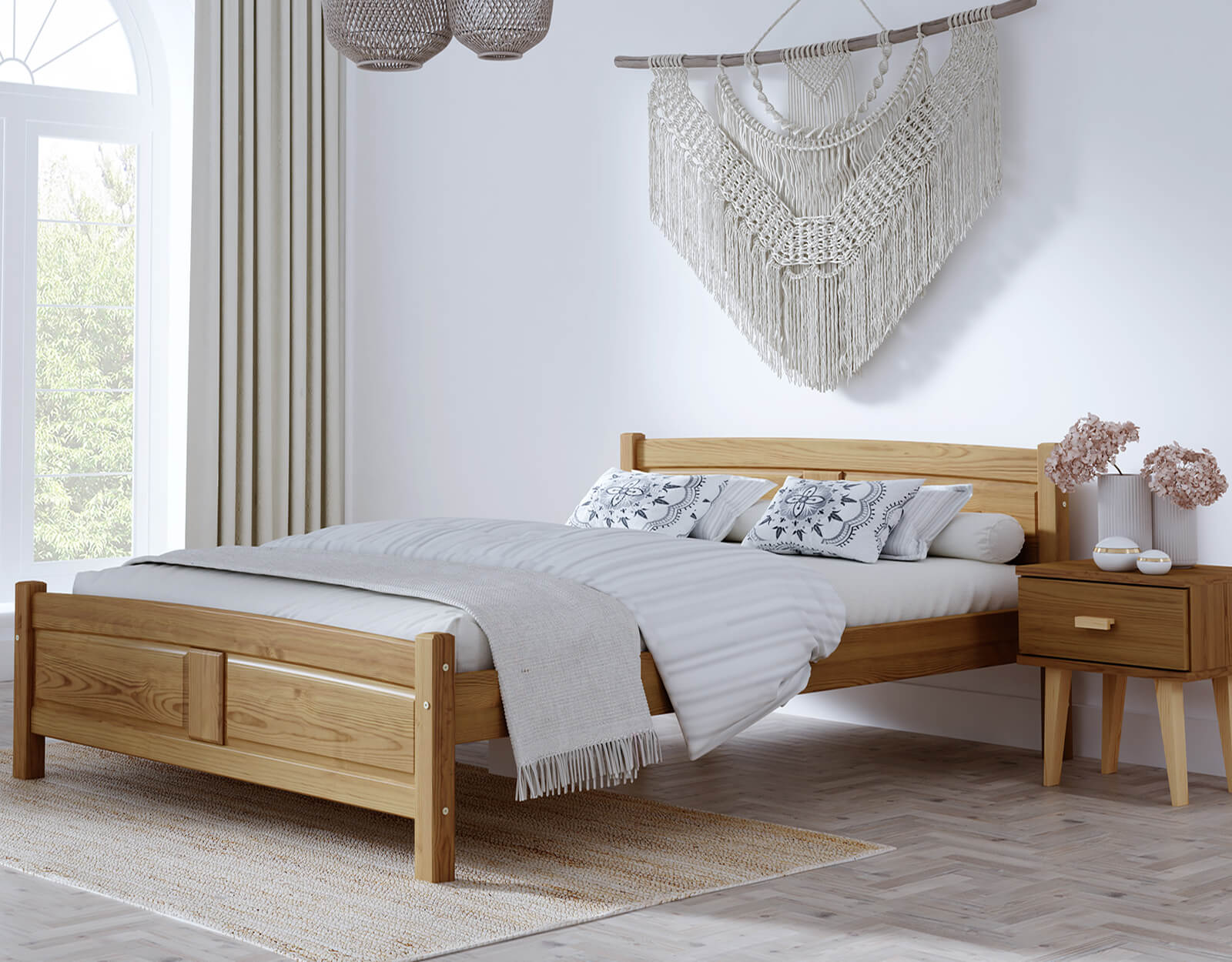A Květa ágy kizárólag természetes fenyőfából készült, ami masszív felépítést biztosít. A minimalista forma tökéletesen illeszkedik a klasszikus vagy modern lakberendezéshez. A bútor tökéletesen ötvözi az eleganciát és a kényelmet, így biztosítva a hálószoba sokoldalúságát. Az egyszerű kialakítás dekoratív hangsúlyt ad a szobának, miközben a karbantartás egyszerű. A Flower modell harmóniát hoz a szobába és ideális feltételeket teremt a pihenéshez.
