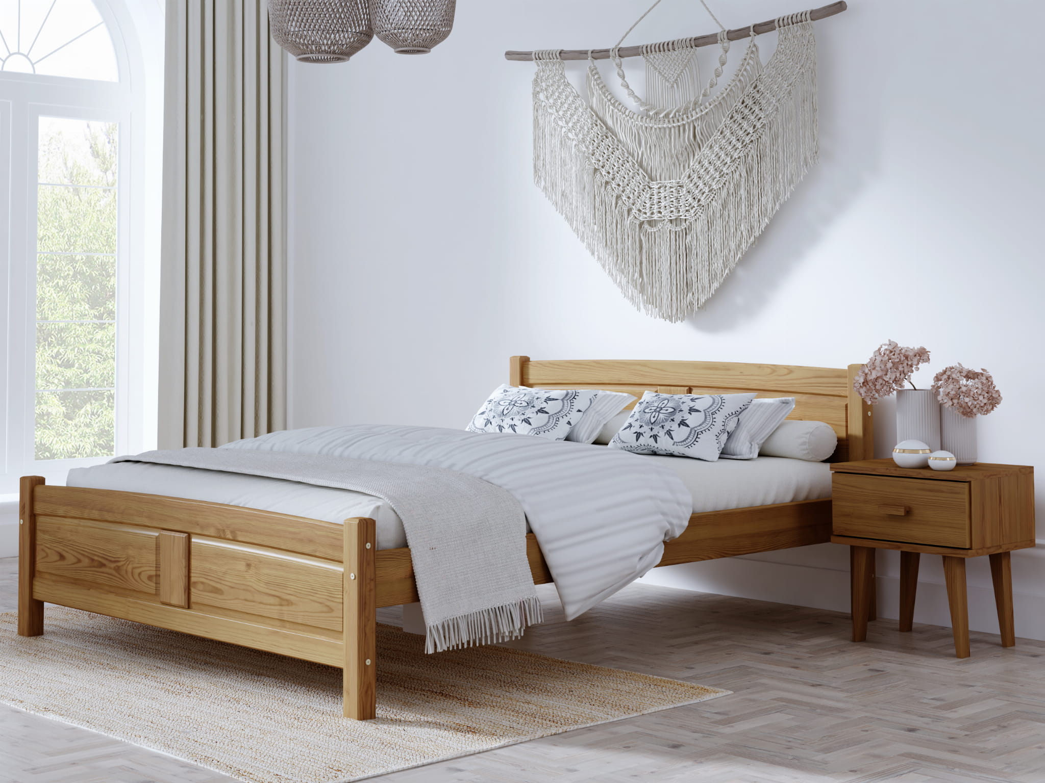 A Květa ágy kizárólag természetes fenyőfából készült, ami masszív felépítést biztosít. A minimalista forma tökéletesen illeszkedik a klasszikus vagy modern lakberendezéshez. A bútor tökéletesen ötvözi az eleganciát és a kényelmet, így biztosítva a hálószoba sokoldalúságát. Az egyszerű kialakítás dekoratív hangsúlyt ad a szobának, miközben a könnyű karbantartás is megmarad. A Flower modell harmóniát hoz a szobába és ideális feltételeket teremt a pihenéshez.