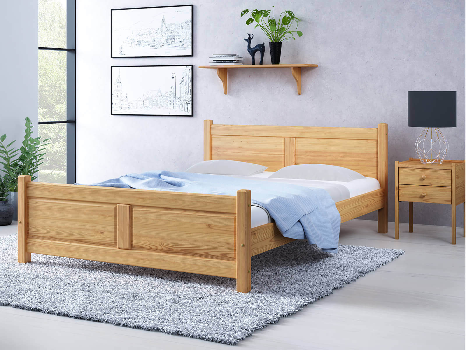 A Lena ágy teljes egészében természetes fenyőfából készült, ami masszív felépítést biztosít. A minimalista forma tökéletesen illeszkedik a klasszikus vagy modern lakberendezéshez. A bútor tökéletesen ötvözi az eleganciát és a kényelmet, így biztosítva a hálószoba sokoldalúságát. Az egyszerű kialakítás dekoratív hangsúlyt ad a szobának, miközben a karbantartás egyszerű. A Lena modell harmóniát hoz a szobába és ideális feltételeket teremt a pihenéshez.