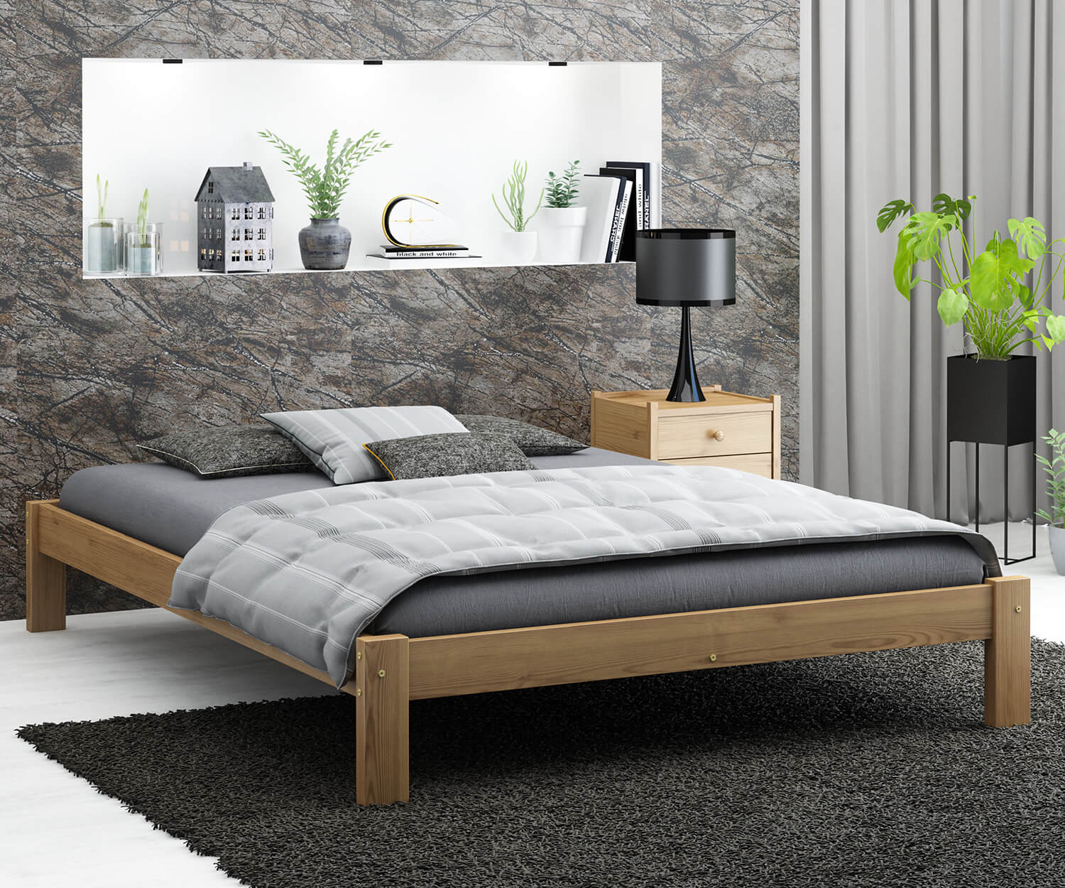 A Luisa ágy teljes egészében természetes fenyőfából készült, ami masszív felépítést biztosít. A minimalista forma tökéletesen illeszkedik a klasszikus vagy modern lakberendezéshez. A bútor tökéletesen ötvözi az eleganciát és a kényelmet, így biztosítva a hálószoba sokoldalúságát. Az egyszerű kialakítás dekoratív hangsúlyt ad a szobának, miközben a karbantartás egyszerű. A Luisa modell harmóniát hoz a szobába és ideális feltételeket teremt a pihenéshez.