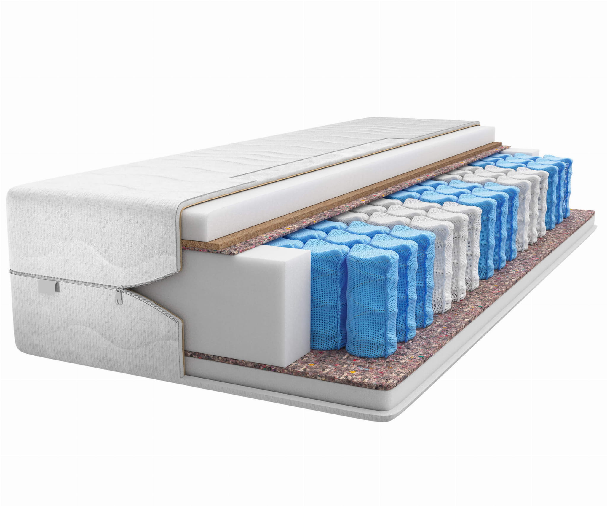 | 1. Cipzáras huzat - könnyen levehető és mosható huzat. Háromféle huzat közül választhat. 2. PUR hab - a szerkezetének köszönhetően jó illeszkedést tesz lehetővé, biztosítva a megfelelő légáramlást a matrac egészén. 3. Kókuszrost - természetes összetevőkből készült kókuszrost réteg, amely nem okoz allergiát. A kókuszrost alátét hatékonyan erősíti a matrac szerkezetét és meghosszabbítja annak élettartamát. 4. Zsebrugók - külön zsebekbe vannak elhelyezve, ennek köszönhetően minden rugó önállóan működik, és működésük teljesen csillapított. A kínált matrac 9, a felhasználóra szabott keménységű zónával rendelkezik. 5. Filc - nagyszerű szigetelés a rugók számára a habrétegekkel. Megerősíti a matrac teljes szerkezetét. 6. PUR hab - a szerkezetének köszönhetően lehetővé teszi a jó illeszkedést, biztosítva a megfelelő légáramlást az egész matracban. | ![]() |