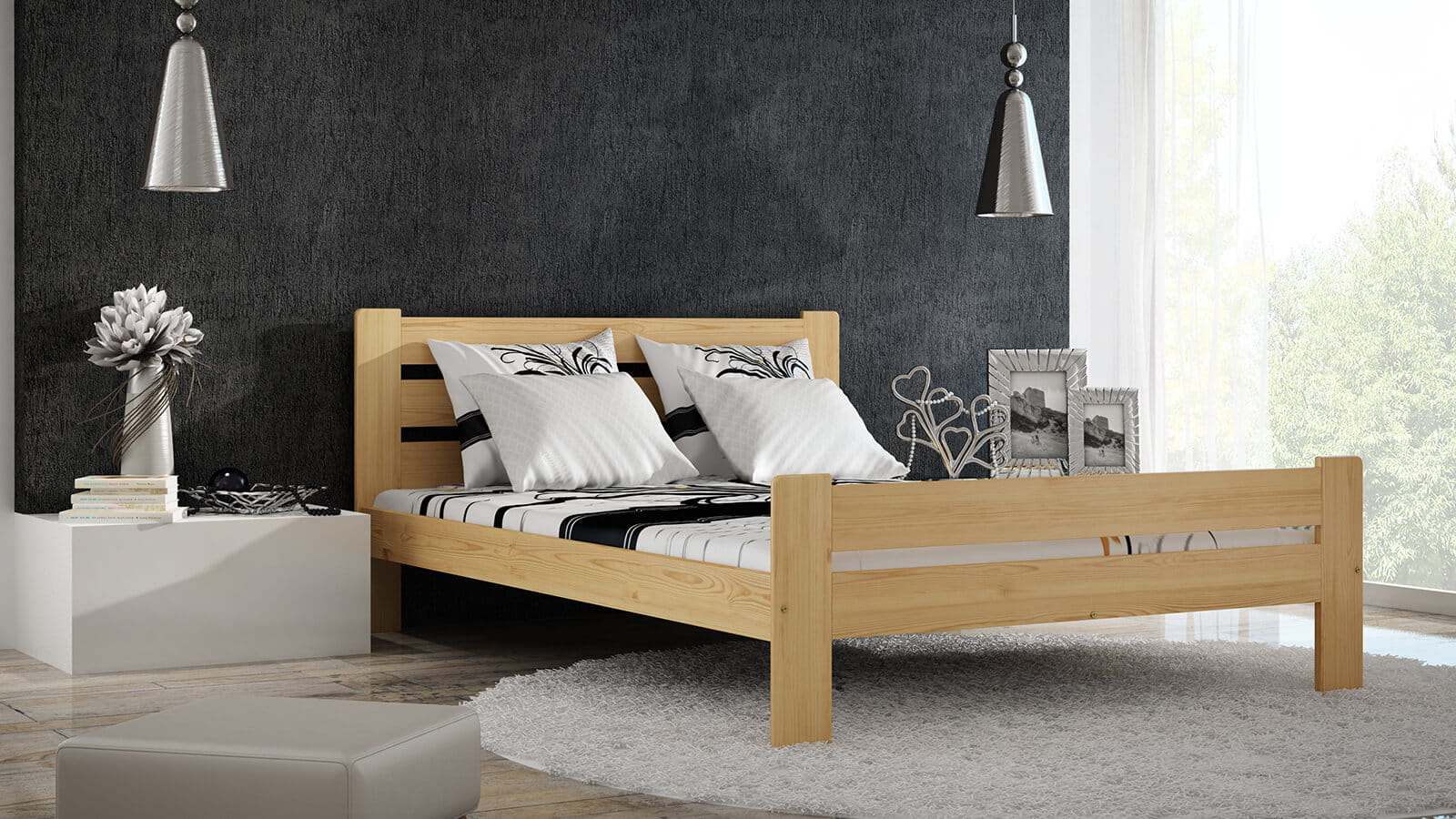 TermékleírásA Neli egyszemélyes ágy teljes egészében természetes fenyőfából készült, ami masszív felépítést biztosít. A minimalista forma tökéletesen illeszkedik a klasszikus vagy modern belsőépítészethez. A bútor tökéletesen ötvözi az eleganciát és a kényelmet, így biztosítva a hálószoba sokoldalúságát. Az egyszerű kialakítás dekoratív hangsúlyt ad a szobának, miközben a karbantartás egyszerű. A Neli modell harmóniát hoz a szobába és ideális feltételeket teremt a pihenéshez.
