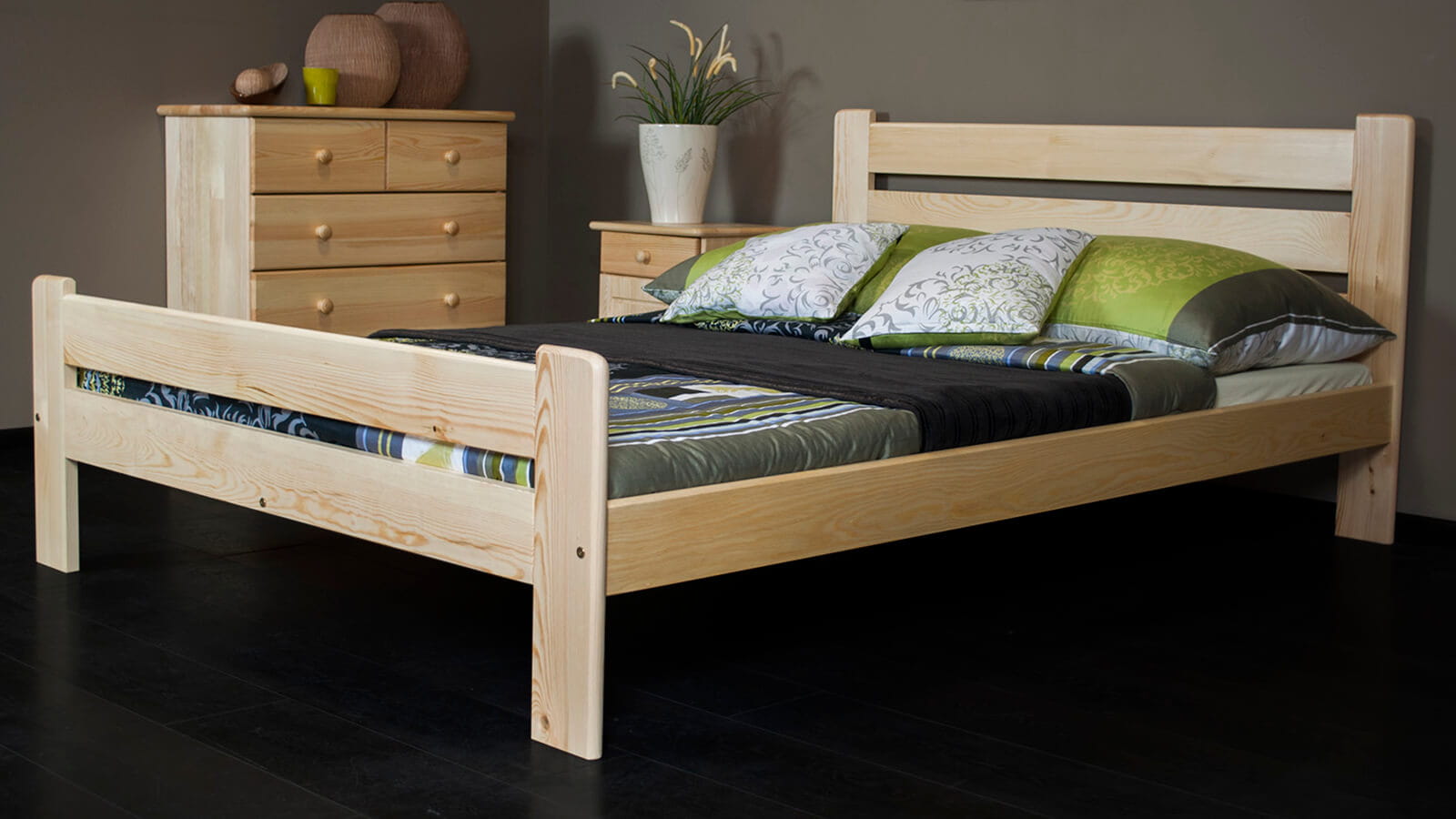 A készlet egy rugalmas rácsot tartalmaz, amely 12 nyírfa lécből készült, szövetcsíkkal összekötve. Ez a bútor a legmagasabb minőségű fenyőfából készült, 3-szoros bevonattal, környezetbarát festékekkel. Azon kevés cégek közé tartozunk, amelyek az Országos Higiéniai Intézet által tanúsított festékeket használnak a festéshez. Lakkjaink engedélyezettek olyan tárgyakon való használatra, amelyekkel a gyermekek érintkeznek (a DIN EN 71 szabvány 3. része szerint).
