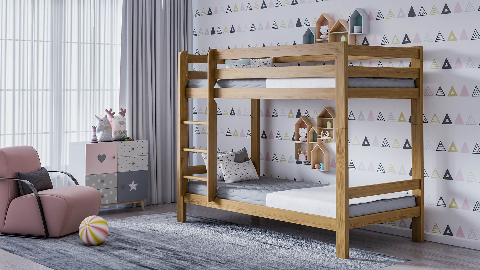 Fából készült emeletes ágy 90x200cm tölgy
