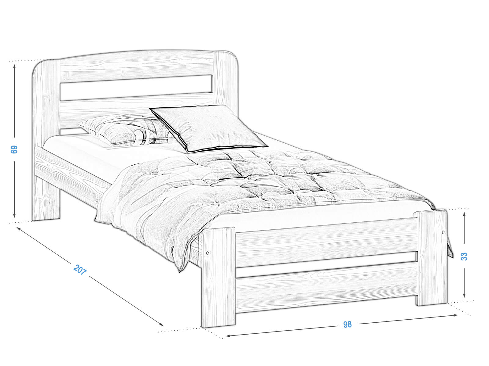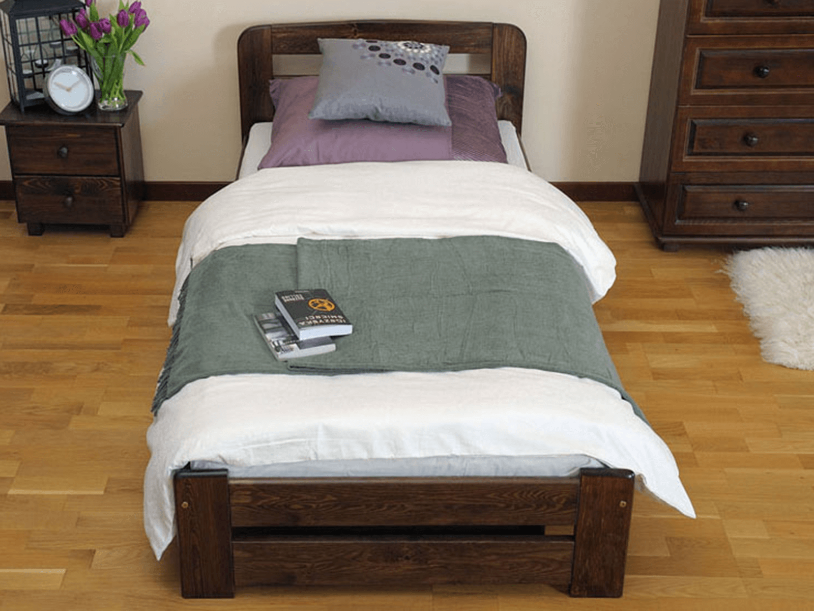 A Sasa ágy teljes egészében természetes fenyőfából készült, ami masszív felépítést biztosít. A minimalista forma tökéletesen illeszkedik a klasszikus vagy modern lakberendezéshez. A bútor tökéletesen ötvözi az eleganciát és a kényelmet, biztosítva a hálószoba sokoldalúságát. Az egyszerű kialakítás dekoratív hangsúlyt ad a szobának, miközben a könnyű karbantartás is megmarad. A Sasa modell harmóniát hoz a szobába és ideális feltételeket teremt a pihenéshez.