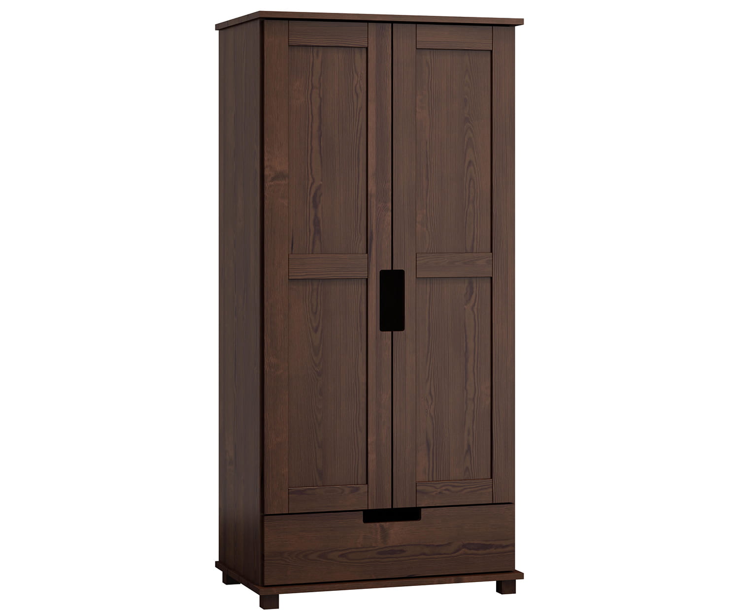| A modern - bútor sorozatot innovatív design jellemzi, amely megfelel a modern belsőépítészet kedvelőinek ízlésének. A szekrények a gardrób vagy a hálószoba nélkülözhetetlen elemei, amelyek segítenek rendet tartani a tárolt ruhákban. A természetes fenyőfából készült fa gardróbszekrények erős és tartós bútorszerkezetet biztosítanak. Az alkalmazott új megoldás, a rovátkolt fogantyúk formájában szokatlan formát biztosít, amely tökéletesen kiegészíti a belső tereket. A 7-es számú gardróbszekrény tartalmaz egy rudat a ruhák felakasztásához és egy tágas fiókot, amely csúszkákon csúszik ki. Önszerelésre tervezett bútor. |