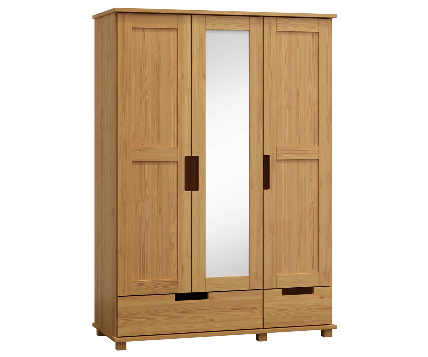 | A modern - bútor sorozatot innovatív design jellemzi, amely megfelel a modern belsőépítészet kedvelőinek ízlésének. A szekrények a gardrób vagy a hálószoba nélkülözhetetlen elemei, amelyek segítenek rendet tartani a tárolt ruhákban. A természetes fenyőfából készült fa gardróbszekrények erős és tartós bútorszerkezetet biztosítanak. Az alkalmazott új megoldás, a rovátkolt fogantyúk formájában szokatlan formát biztosít, amely tökéletesen kiegészíti a belső tereket. A 8-as számú gardróbszekrény egy rudat tartalmaz a ruhák felakasztásához és három polcot egy szekcióban. Alul 2 fiók található, amelyek futókon csúsznak ki. Az egyik ajtószárnyat tükörrel látták el, hogy vizuálisan megnövelje a helyiséget és segítse a ruhaválasztást. A bútorokat önszerelésre tervezték. |