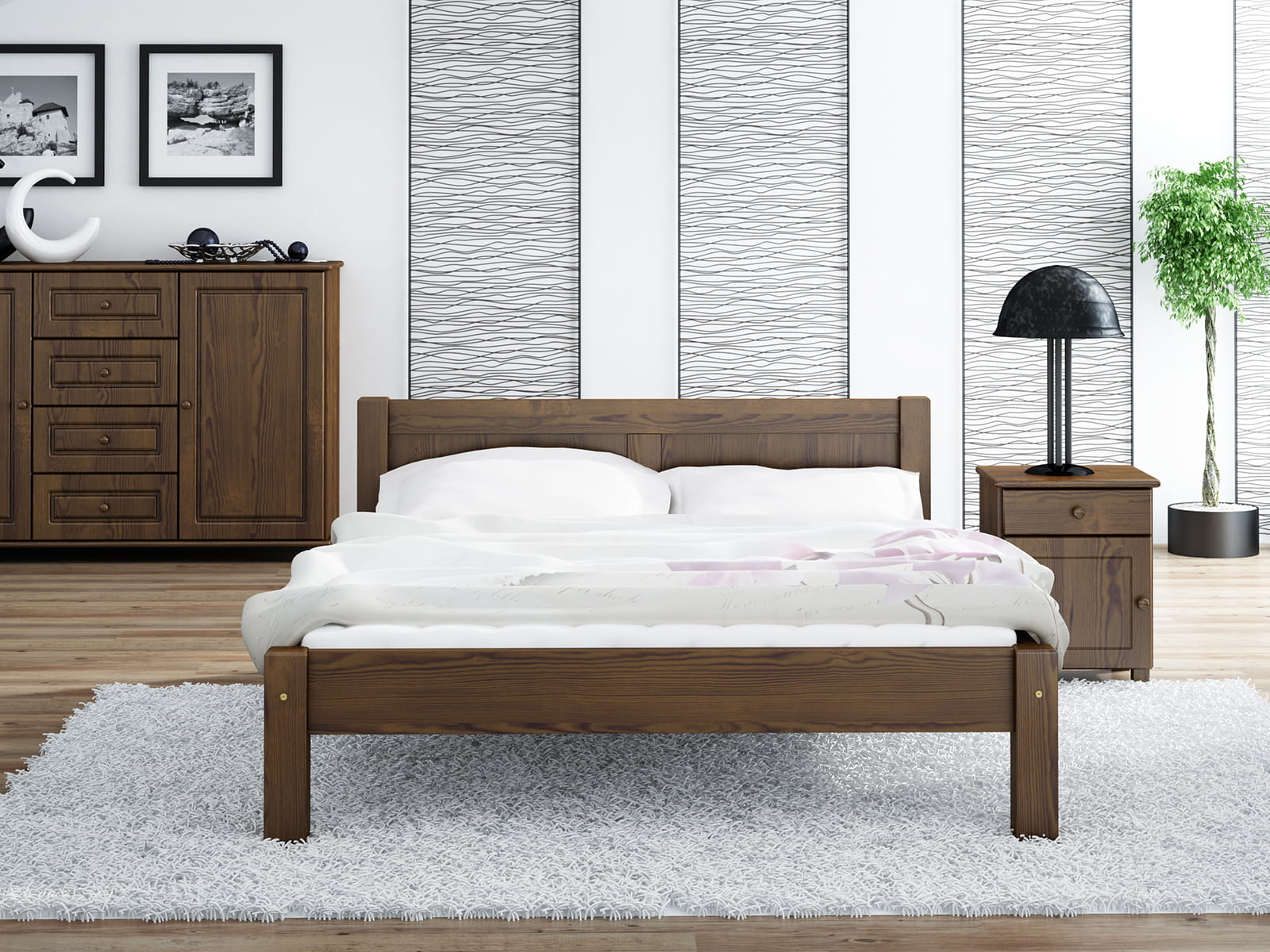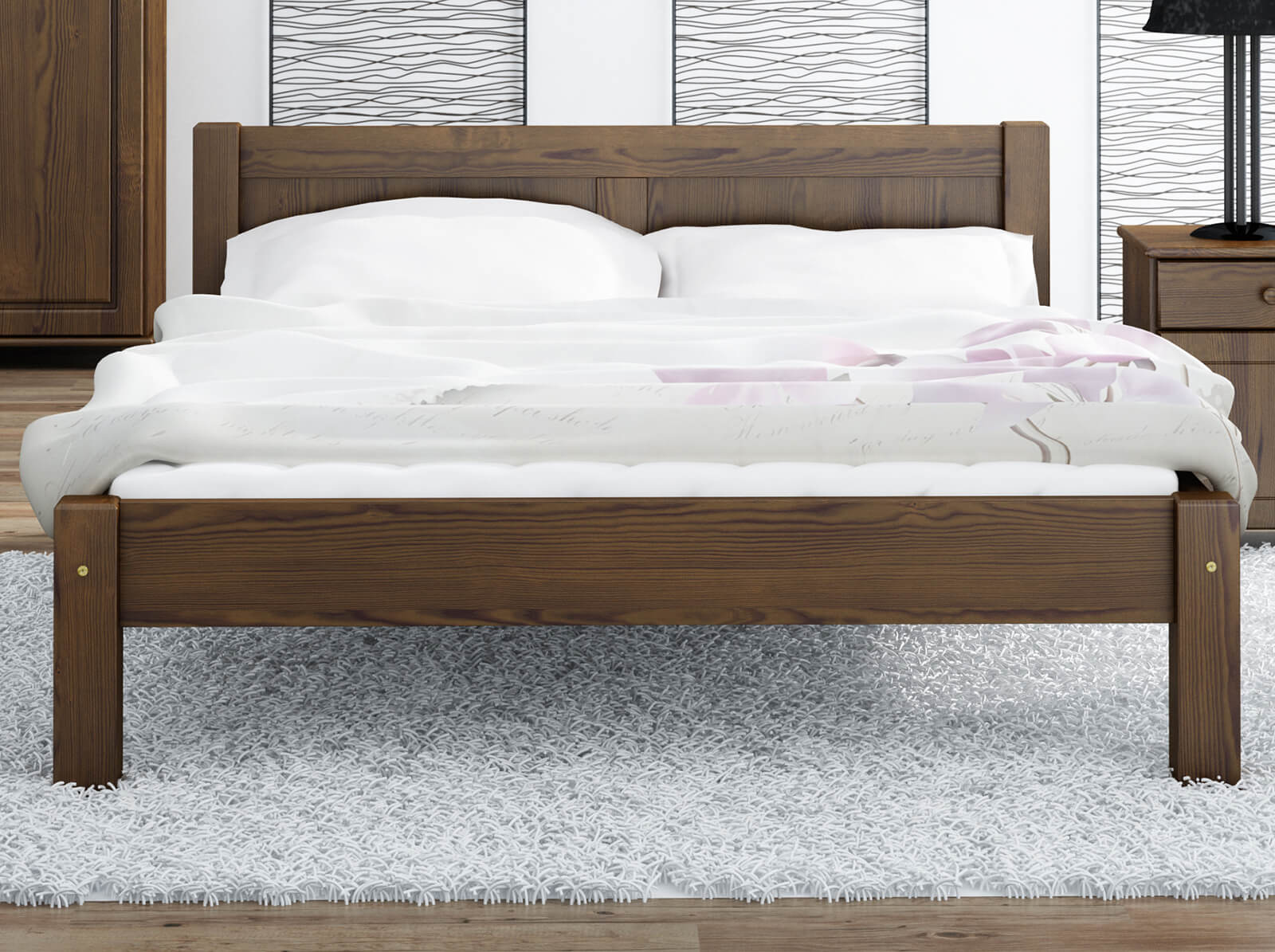 A Viktoria ágy teljes egészében természetes fenyőfából készült, ami masszív felépítést biztosít. A minimalista forma tökéletesen illeszkedik a klasszikus vagy modern lakberendezéshez. A bútor tökéletesen ötvözi az eleganciát és a kényelmet, így biztosítva a hálószoba sokoldalúságát. Az egyszerű kialakítás dekoratív hangsúlyt ad a szobának, miközben a karbantartás egyszerű. A Viktoria modell harmóniát hoz a szobába és ideális feltételeket teremt a pihenéshez.