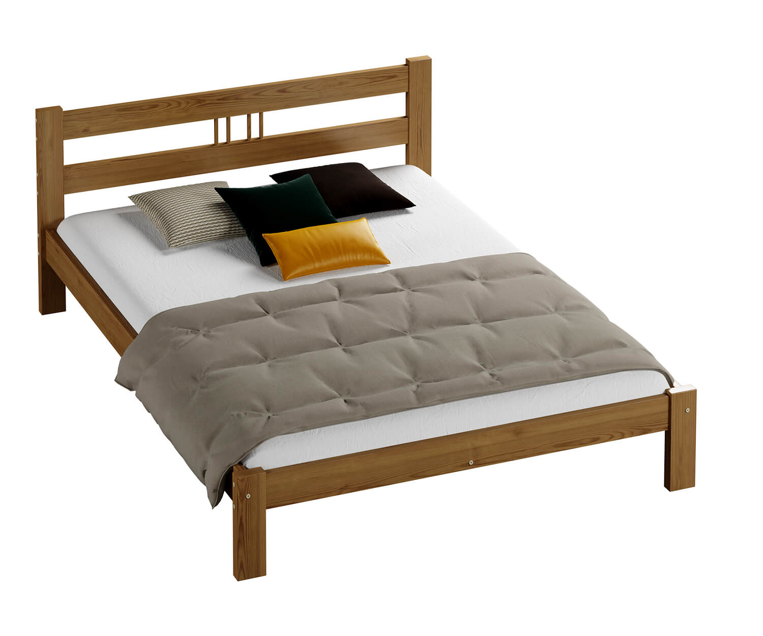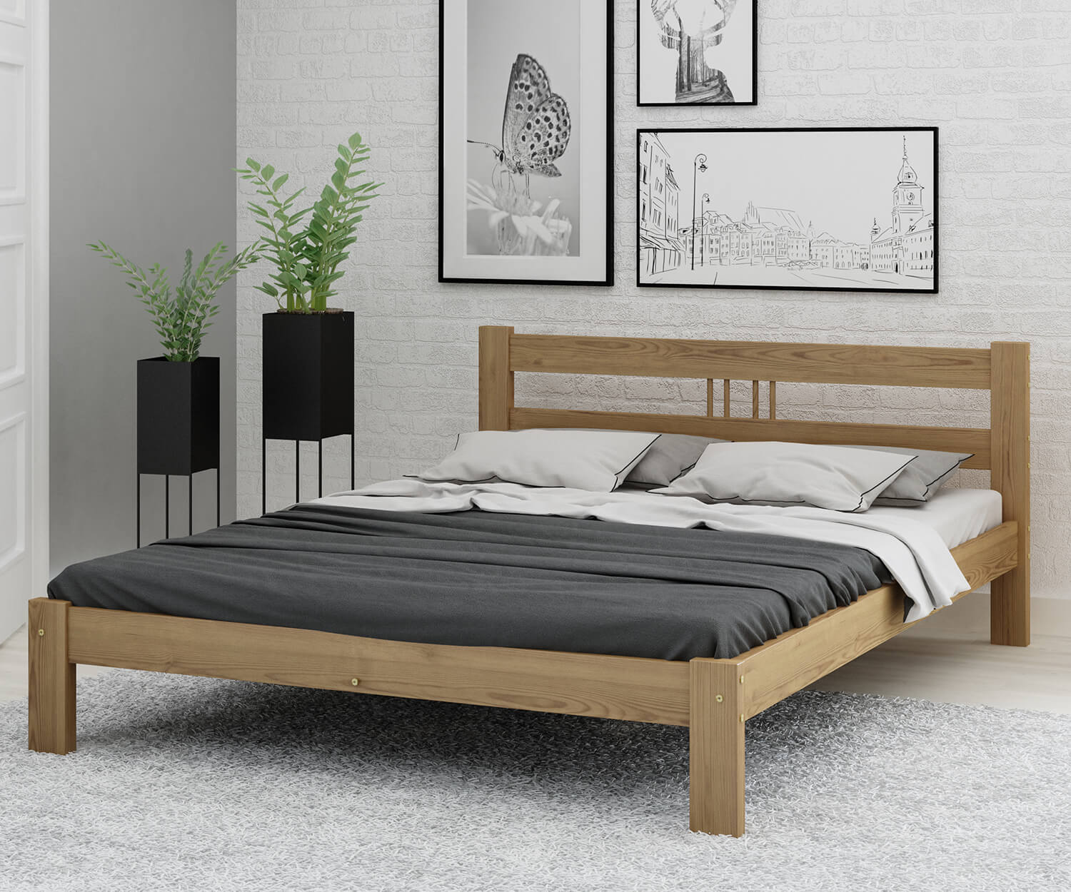 A Virginia ágy teljes egészében természetes fenyőfából készült, ami masszív felépítést biztosít. Minimalista formája tökéletesen illeszkedik a klasszikus vagy modern lakberendezéshez. A bútor tökéletesen ötvözi az eleganciát és a kényelmet, így biztosítva a hálószoba sokoldalúságát. Az egyszerű kialakítás dekoratív hangsúlyt ad a szobának, miközben a karbantartás egyszerű. A Virginia modell harmóniát hoz a szobába és ideális feltételeket teremt a pihenéshez.